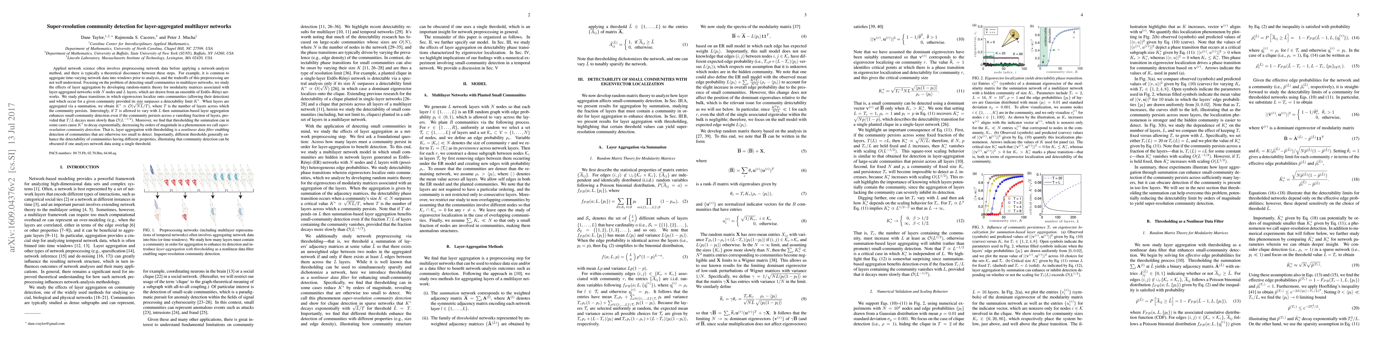 The paper develops random matrix theory for modularity matrices of layer-aggregated multilayer networks, providing insights into phase transitions for community detection and introducing the concept of super-resolution community detection through thresholding.