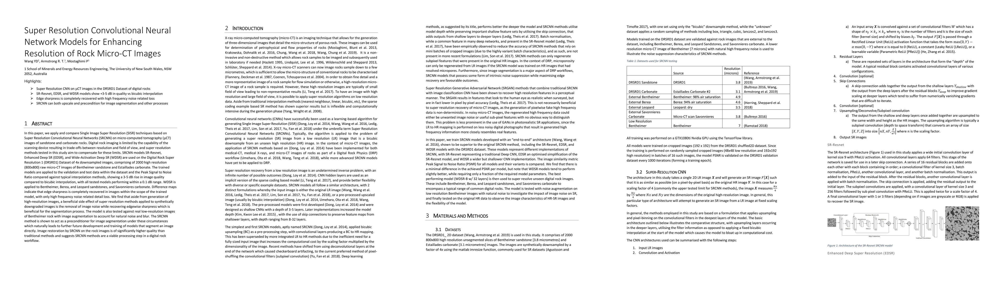 This paper explores the application of Super Resolution Convolutional Neural Networks (SRCNN) to enhance the resolution of micro-computed tomography (μCT) images of rock samples, showing a 3-5 dB improvement in image quality over bicubic interpolation. The SRCNN models tested, including SR-Resnet, EDSR, and WDSR, effectively recover edge sharpness and reduce noise, suggesting they are valuable for digital rock imaging workflows.