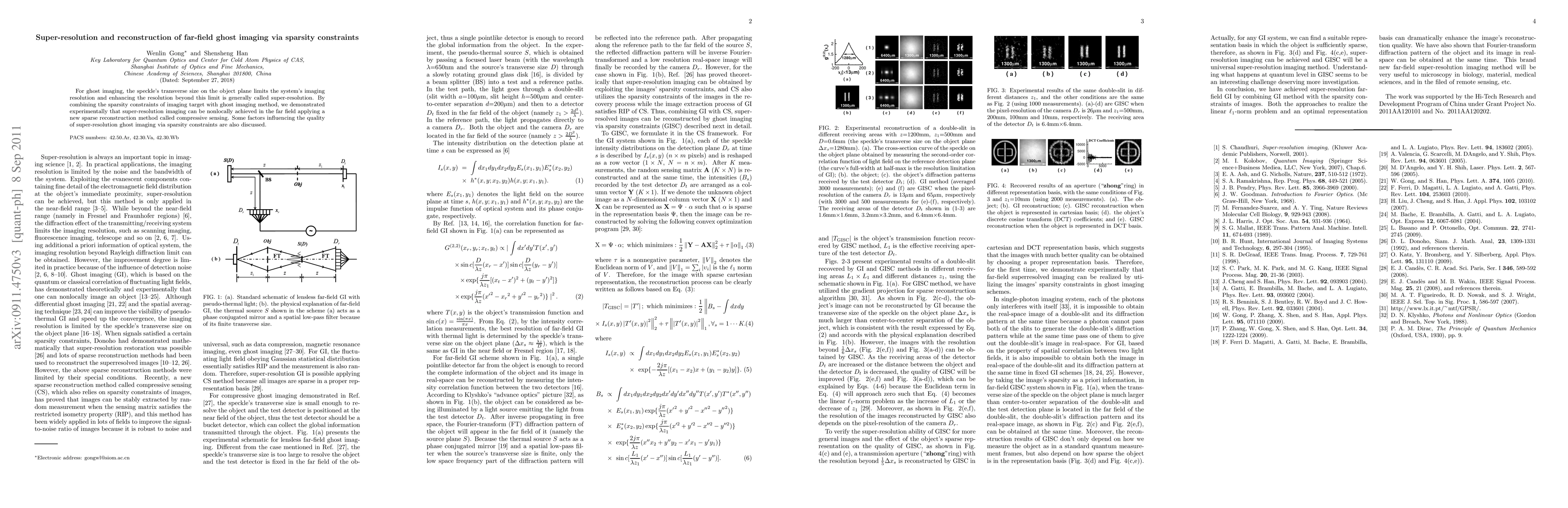 This paper demonstrates super-resolution imaging beyond the diffraction limit using compressive sampling and ghost imaging, leveraging the sparse prior property of images to achieve detailed reconstructions nonlocally in the far field. The method's physical basis and potential applications are also explored.