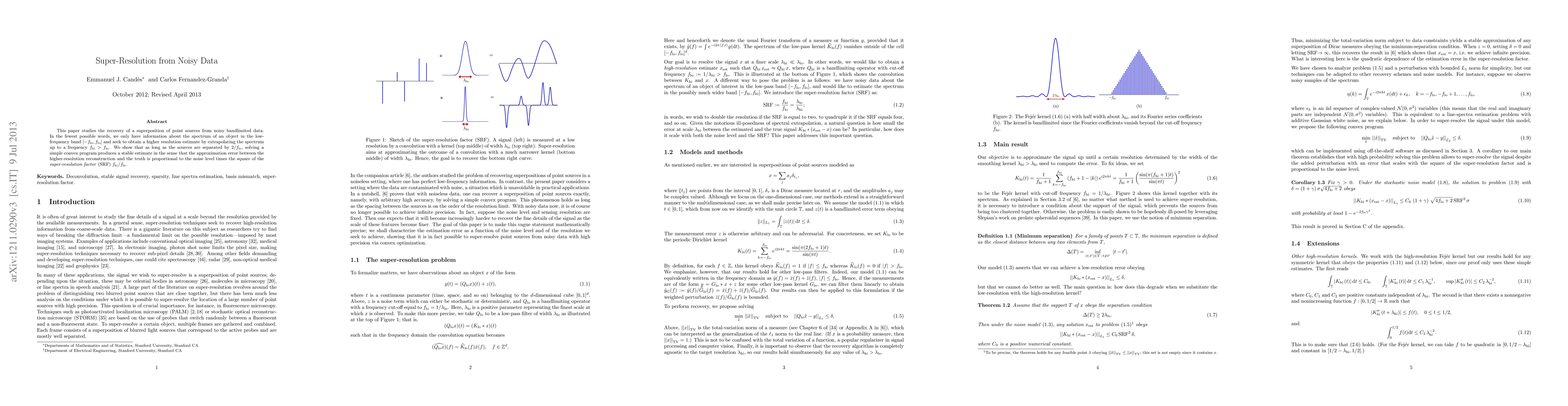 Researchers developed a method to create high-resolution images from low-quality data by solving a simple convex program, achieving stable estimates with minimal error proportional to the noise level.