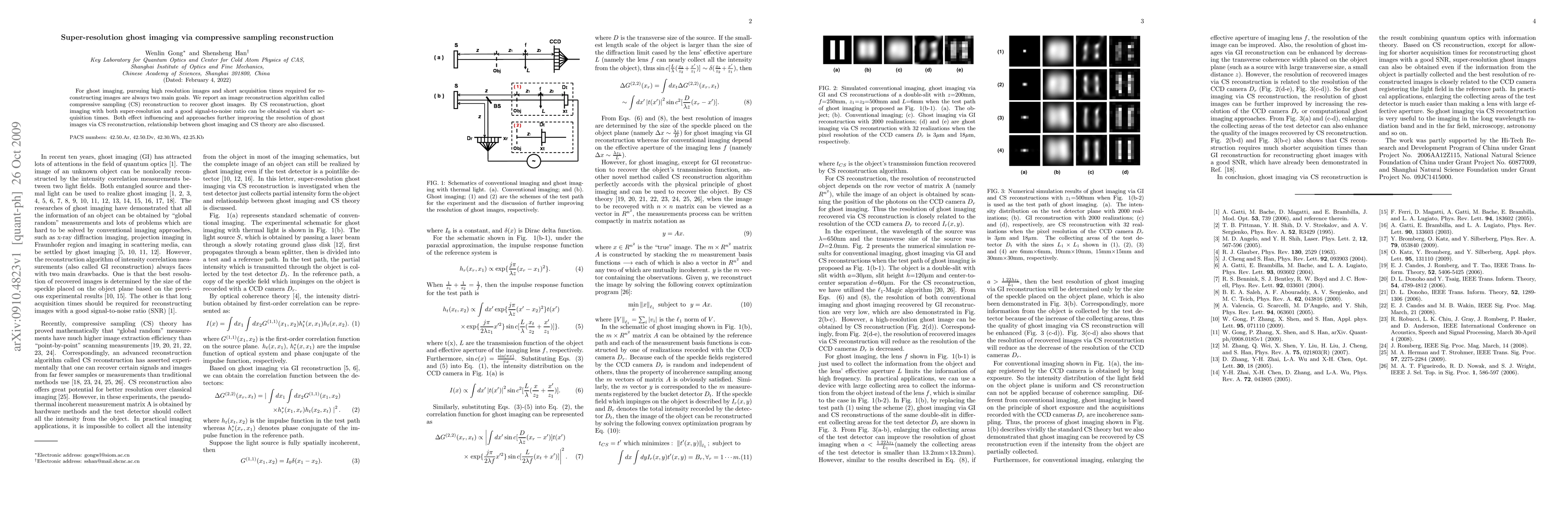 This paper proposes a compressive sampling reconstruction algorithm for super-resolution ghost imaging, achieving high-resolution images and improved signal-to-noise ratios within short acquisition times, while discussing the relationship between ghost imaging and compressive sensing theory.