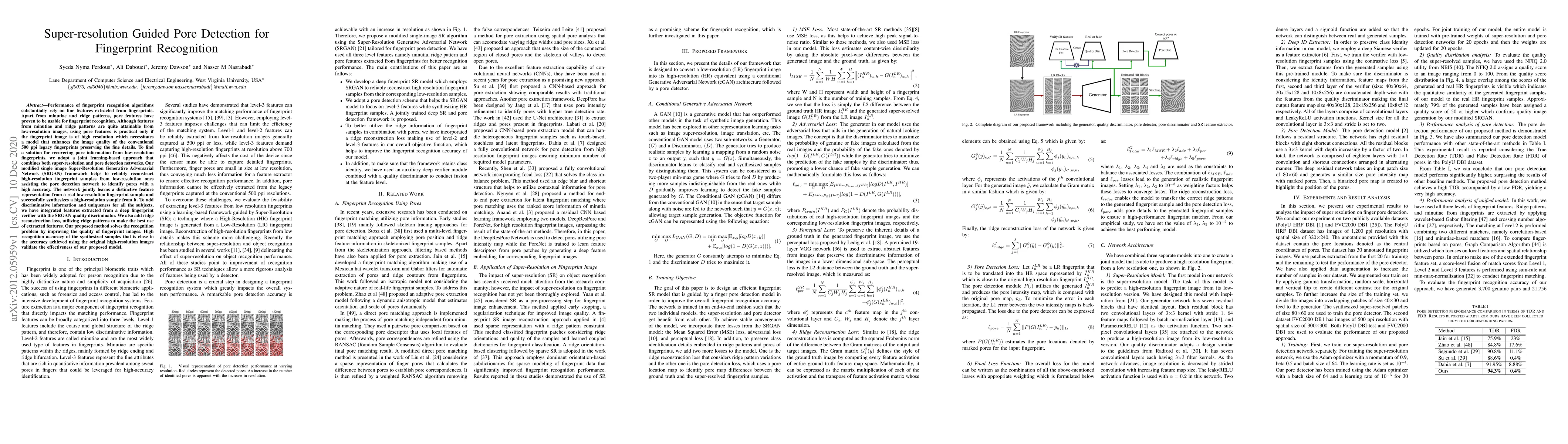 This paper proposes a joint learning-based approach combining super-resolution and pore detection networks to enhance low-resolution fingerprint images for improved recognition. The modified SRGAN framework reconstructs high-resolution samples, aiding pore detection and incorporating ridge reconstruction loss for better feature extraction, achieving high recognition accuracy.