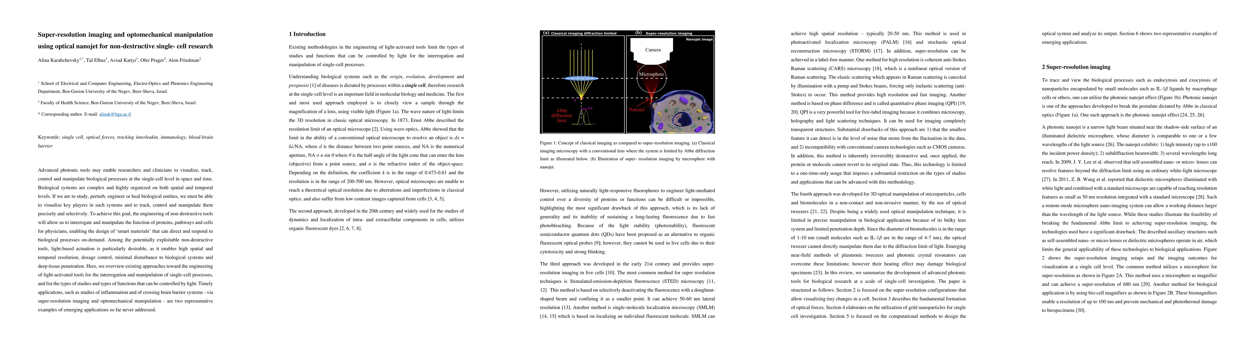 Advanced photonic tools may enable researchers and clinicians to visualize, track, control and manipulate biological processes at the single-cell level in space and time. Biological systems are complex and highly organized on both spatial and temporal levels. If we are to study, perturb, engineer or heal biological entities, we must be able to visualize key players in such systems and to track, control and manipulate them precisely and selectively. To achieve this goal, the engineering of non-destructive tools will allow us to interrogate and manipulate the function of proteins, pathways and cells for physicians, enabling the design of 'smart materials' that can direct and respond to biological processes on-demand. Among the potentially exploitable non-destructive tools, light-based actuation is particularly desirable, as it enables high spatial and temporal resolution, dosage control, minimal disturbance to biological systems and deep tissue penetration. Here, we overview existing approaches toward the engineering of light-activated tools for the interrogation and manipulation of single-cell processes, and list the types of studies and types of functions that can be controlled by light. Timely applications, such as studies of inflammation and of crossing brain barrier systems - via super-resolution imaging and optomechanical manipulation - are two representative examples of emerging applications so far never addressed.