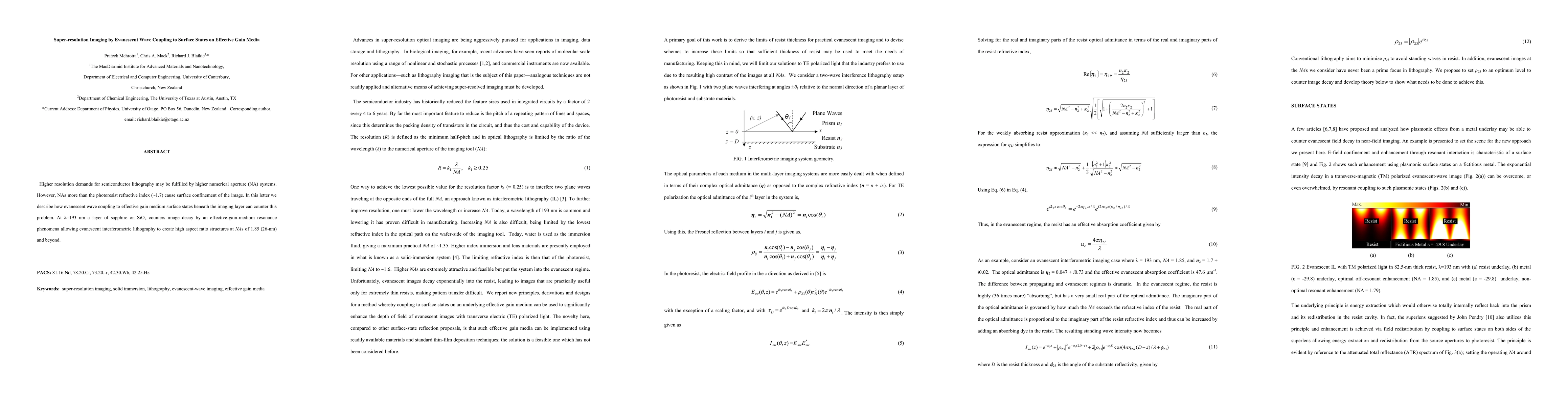 Higher resolution demands for semiconductor lithography may be fulfilled by higher numerical aperture (NA) systems. However, NAs more than the photoresist refractive index (~1.7) cause surface confinement of the image. In this letter we describe how evanescent wave coupling to effective gain medium surface states beneath the imaging layer can counter this problem. At {\lambda}=193 nm a layer of sapphire on SiO2 counters image decay by an effective-gain-medium resonance phenomena allowing evanescent interferometric lithography to create high aspect ratio structures at NAs of 1.85 (26-nm) and beyond.