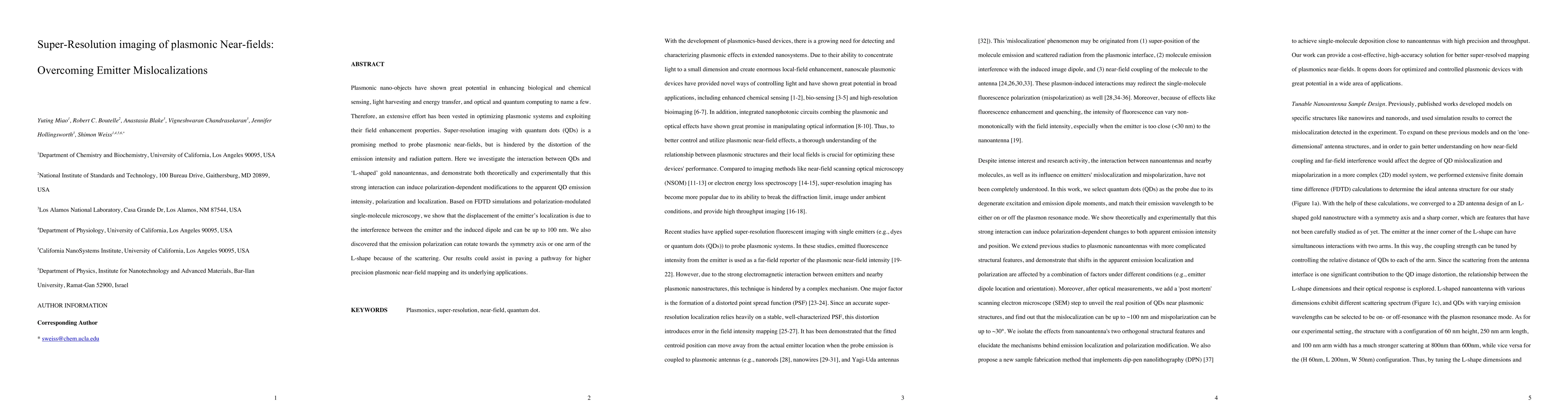 This paper investigates the interaction between quantum dots and L-shaped gold nanoantennas to overcome emitter mislocalizations in super-resolution imaging of plasmonic near-fields. The study reveals polarization-dependent modifications to quantum dot emission, enabling more precise mapping of plasmonic fields.