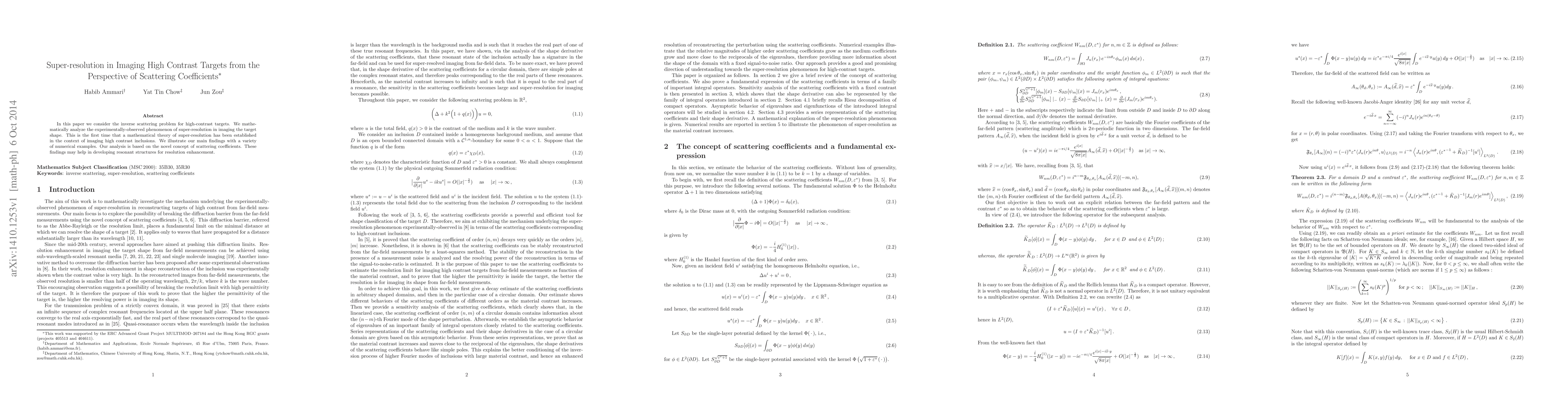 This paper establishes a mathematical theory of super-resolution for imaging high-contrast targets using scattering coefficients, offering a novel perspective on the inverse scattering problem. Numerical examples validate the findings, potentially aiding in the development of enhanced resolution resonant structures.