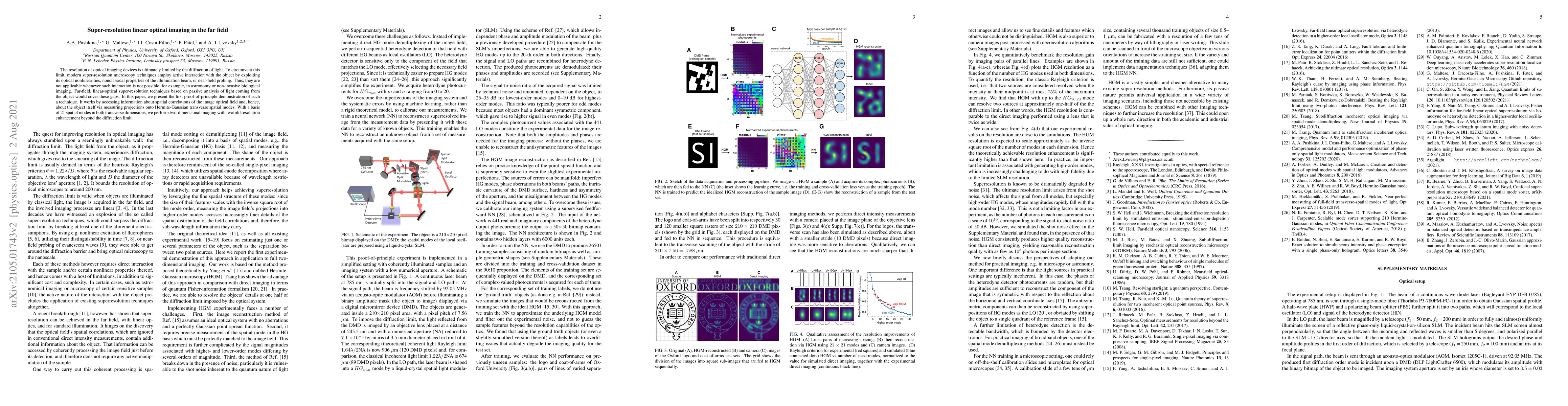 This paper demonstrates a novel far-field, linear-optical super-resolution imaging technique that enhances resolution beyond the diffraction limit by analyzing spatial correlations in the optical field. It employs Hermite-Gaussian modes to achieve twofold resolution enhancement, applicable in scenarios where active interaction is not feasible.
