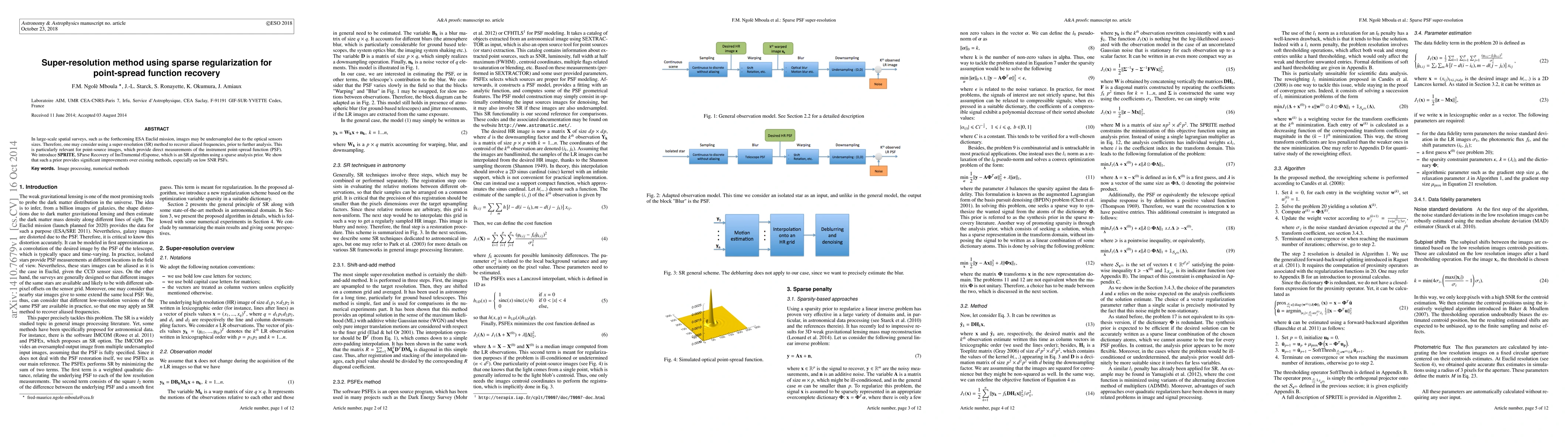 This paper introduces SPRITE, an advanced super-resolution algorithm that employs sparse regularization for recovering the point-spread function (PSF) in undersampled images, demonstrating significant improvements over existing methods, especially in low signal-to-noise ratio scenarios. The method is particularly relevant for large-scale spatial surveys like the ESA Euclid mission.