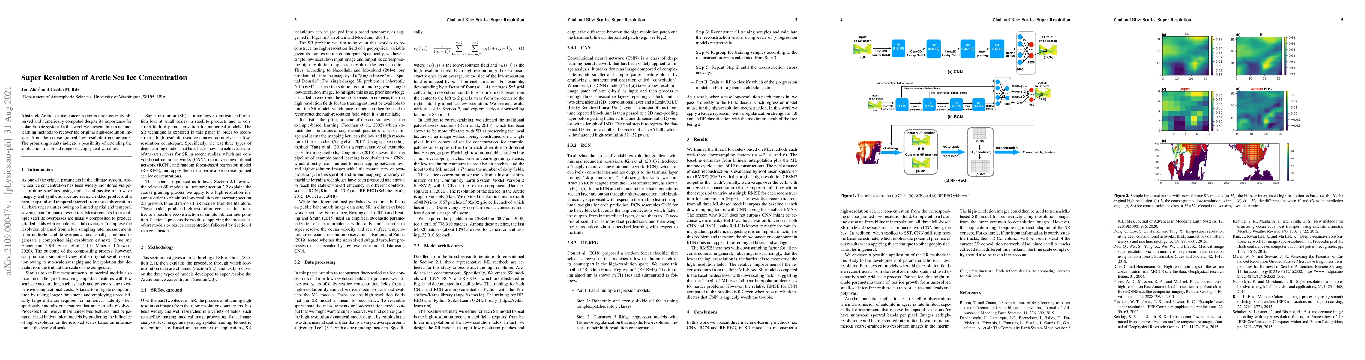 This research introduces three machine-learning techniques to enhance the resolution of Arctic sea ice concentration observations, suggesting potential broader applications for geophysical data improvements. The methods successfully recover high-resolution images from low-resolution inputs, demonstrating significant promise.