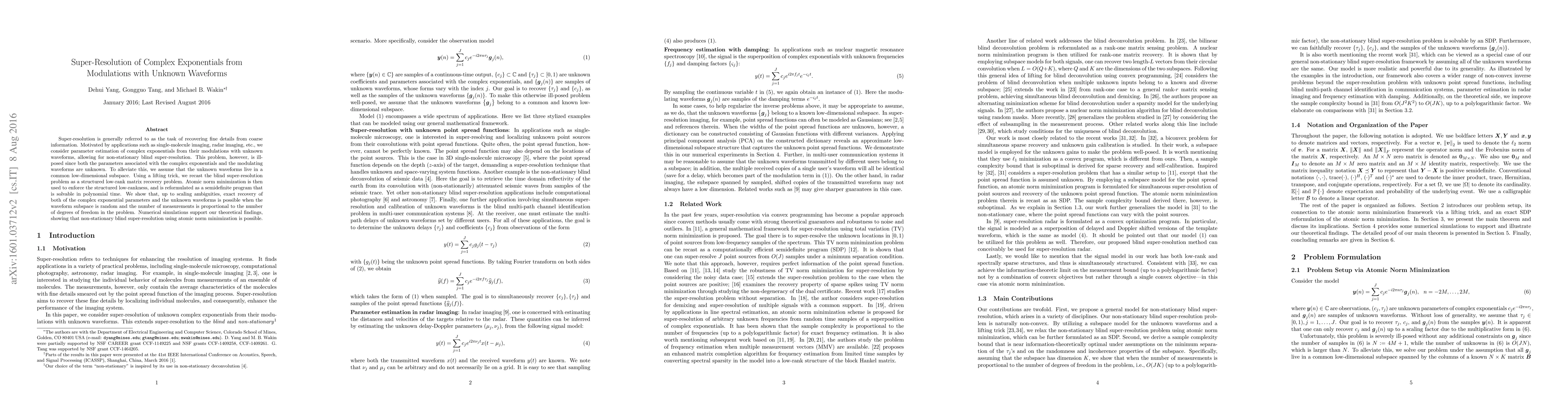 Super-resolution is generally referred to as the task of recovering fine details from coarse information. Motivated by applications such as single-molecule imaging, radar imaging, etc., we consider parameter estimation of complex exponentials from their modulations with unknown waveforms, allowing for non-stationary blind super-resolution. This problem, however, is ill-posed since both the parameters associated with the complex exponentials and the modulating waveforms are unknown. To alleviate this, we assume that the unknown waveforms live in a common low-dimensional subspace. Using a lifting trick, we recast the blind super-resolution problem as a structured low-rank matrix recovery problem. Atomic norm minimization is then used to enforce the structured low-rankness, and is reformulated as a semidefinite program that is solvable in polynomial time. We show that, up to scaling ambiguities, exact recovery of both of the complex exponential parameters and the unknown waveforms is possible when the waveform subspace is random and the number of measurements is proportional to the number of degrees of freedom in the problem. Numerical simulations support our theoretical findings, showing that non-stationary blind super-resolution using atomic norm minimization is possible.