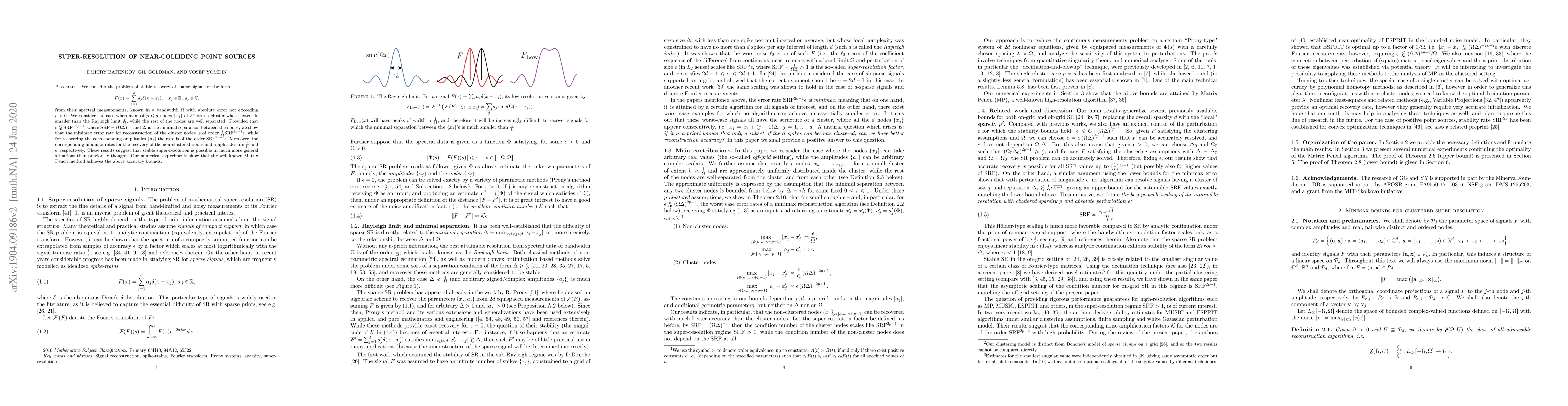 Researchers demonstrate that stable super-resolution of sparse signals is possible even when nodes cluster together, achieving error rates of $O(rac{1}{ ext{ω}} SRF^{2p-1}ε)$ for recovering clusters and amplitudes.