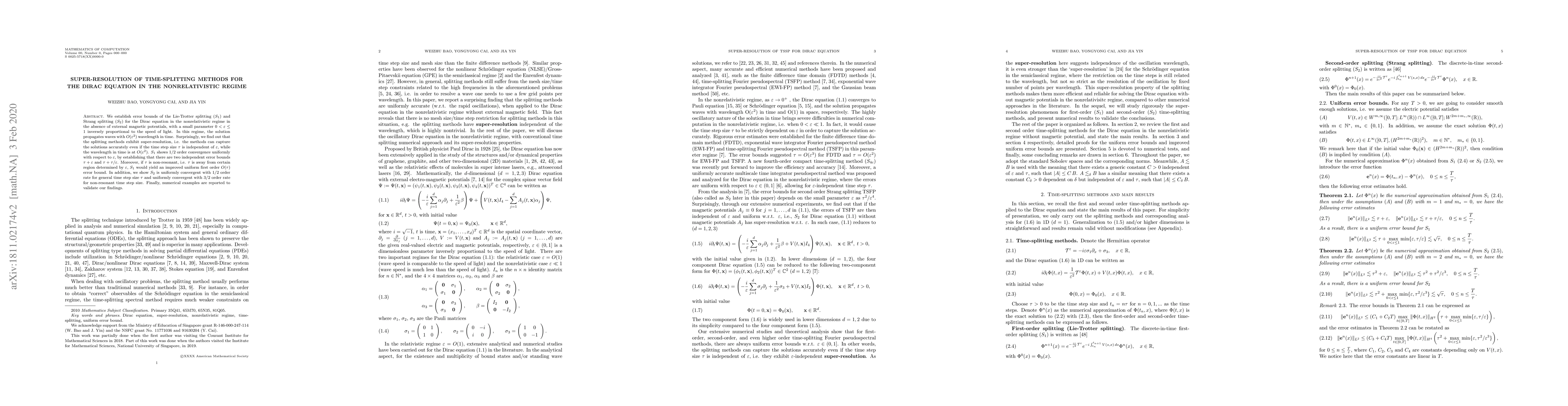 This paper establishes error bounds for Lie-Trotter and Strang splitting methods for the Dirac equation in the nonrelativistic regime, revealing super-resolution capabilities that allow accurate solution capture despite time step sizes exceeding the sampled wavelength. Both methods show uniform convergence rates, with improved bounds under non-resonant conditions.