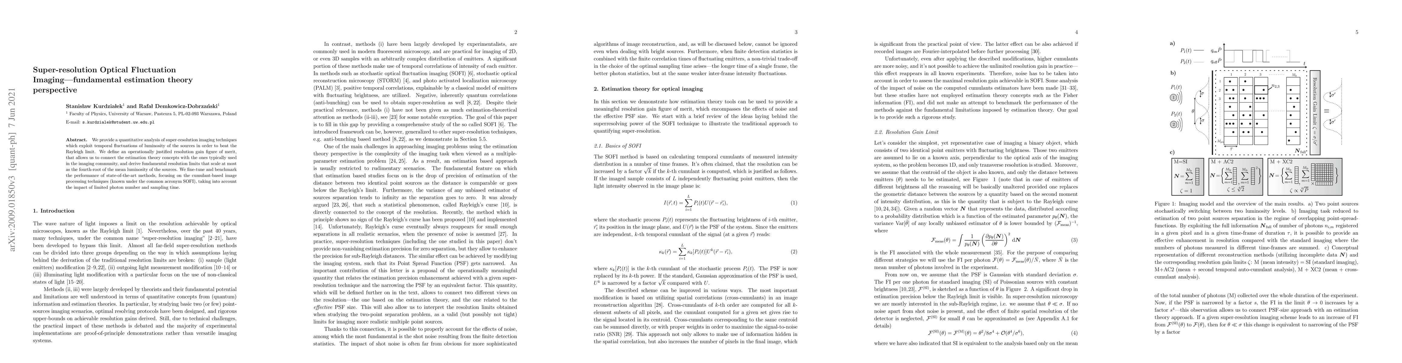We provide a quantitative analysis of super-resolution imaging techniques which exploit temporal fluctuations of luminosity of the sources in order to beat the Rayleigh limit. We define an operationally justified resolution gain figure of merit, that allows us to connect the estimation theory concepts with the ones typically used in the imaging community, and derive fundamental resolution limits that scale at most as the fourth-root of the mean luminosity of the sources. We fine-tune and benchmark the performance of state-of-the-art methods, focusing on the cumulant-based image processing techniques (known under the common acronym SOFI), taking into account the impact of limited photon number and sampling time.