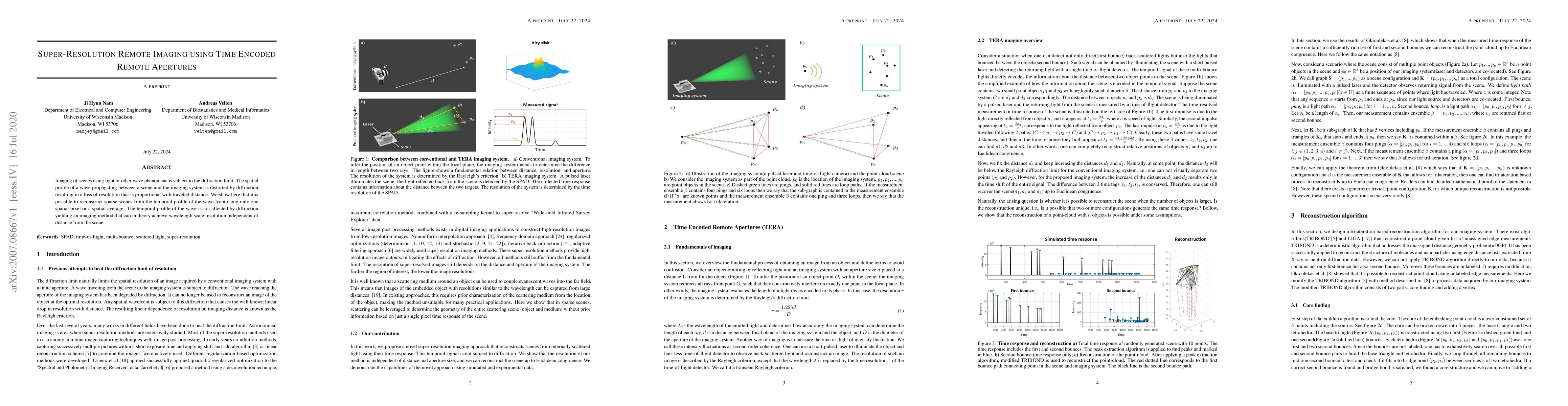 Imaging of scenes using light or other wave phenomena is subject to the diffraction limit. The spatial profile of a wave propagating between a scene and the imaging system is distorted by diffraction resulting in a loss of resolution that is proportional with traveled distance. We show here that it is possible to reconstruct sparse scenes from the temporal profile of the wave-front using only one spatial pixel or a spatial average. The temporal profile of the wave is not affected by diffraction yielding an imaging method that can in theory achieve wavelength scale resolution independent of distance from the scene.
