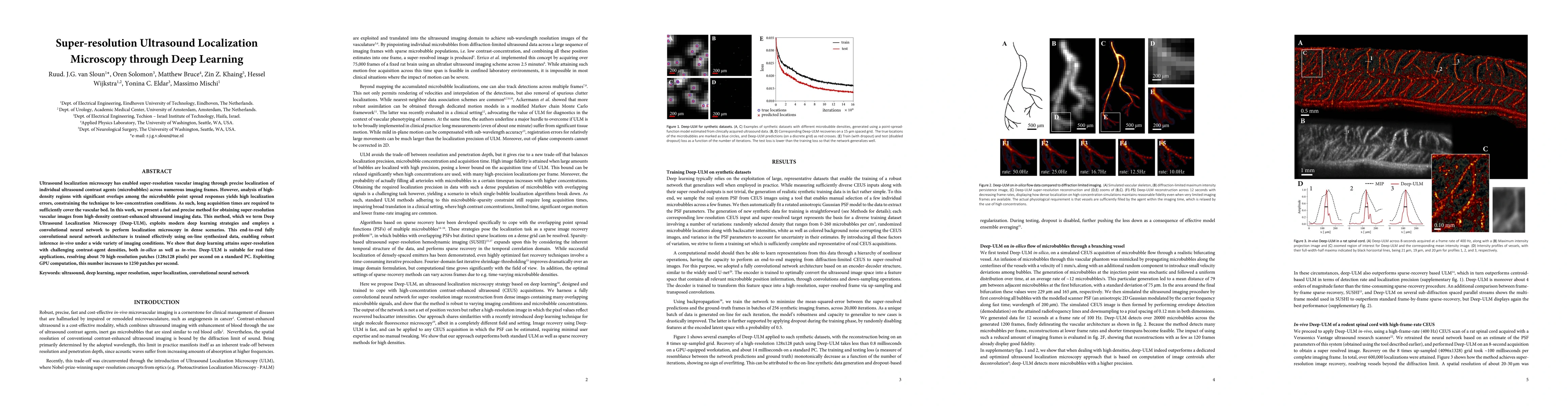 This paper introduces Deep Ultrasound Localization Microscopy (Deep-ULM), a deep learning-based method to achieve super-resolution vascular imaging in high-density contrast-enhanced ultrasound data. Deep-ULM uses a convolutional neural network to accurately localize microbubbles, significantly improving resolution and reducing acquisition times.