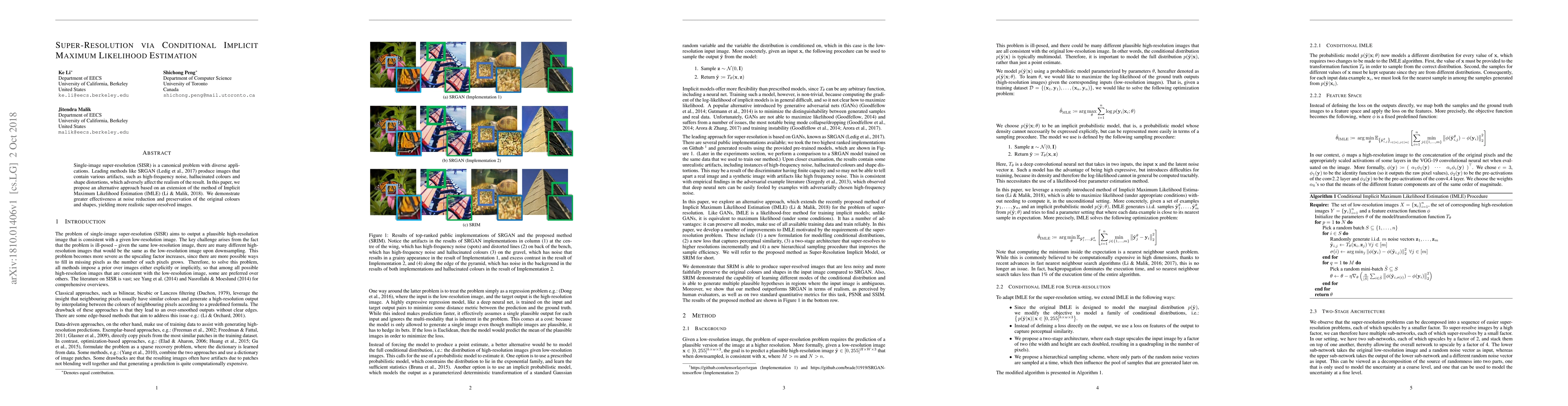 This paper proposes a novel super-resolution method using Conditional Implicit Maximum Likelihood Estimation (CIMLE) to improve image realism by reducing artifacts and preserving original colors and shapes, outperforming existing methods like SRGAN.