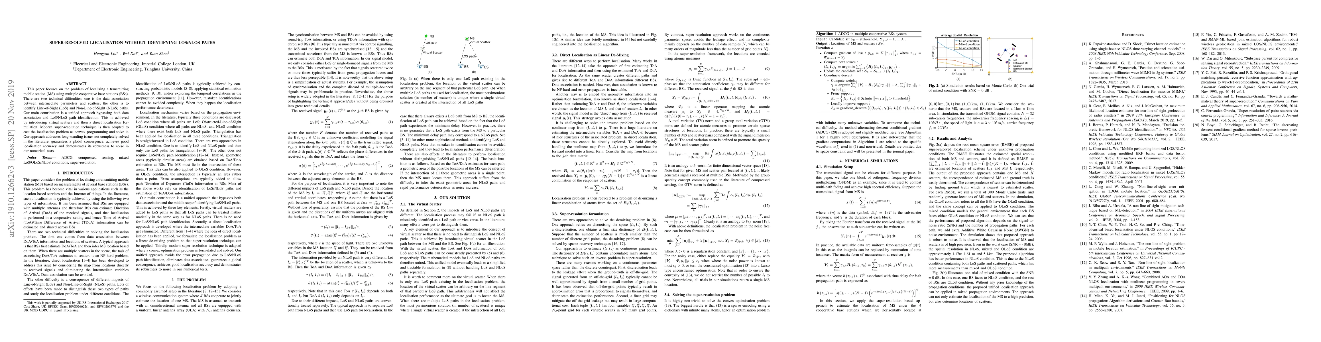 This paper focuses on the problem of localising a transmitting mobile station (MS) using multiple cooperative base stations (BSs). There are two technical difficulties: one is the data association between intermediate parameters and scatters; the other is to identify Line-of-Sight (LoS) and Non-Line-of-Sight (NLoS) paths. Our main contribution is a unified approach bypassing both data association and LoS/NLoS path identification. This is achieved by introducing virtual scatters and then a direct localisation formulation. Modern super-resolution technique is then adapted to cast the localisation problem as convex programming and solve it. Our approach addresses long-standing issues not completely solved in the literature, guarantees a global convergence, achieves good localisation accuracy and demonstrates its robustness to noise in our numerical tests.