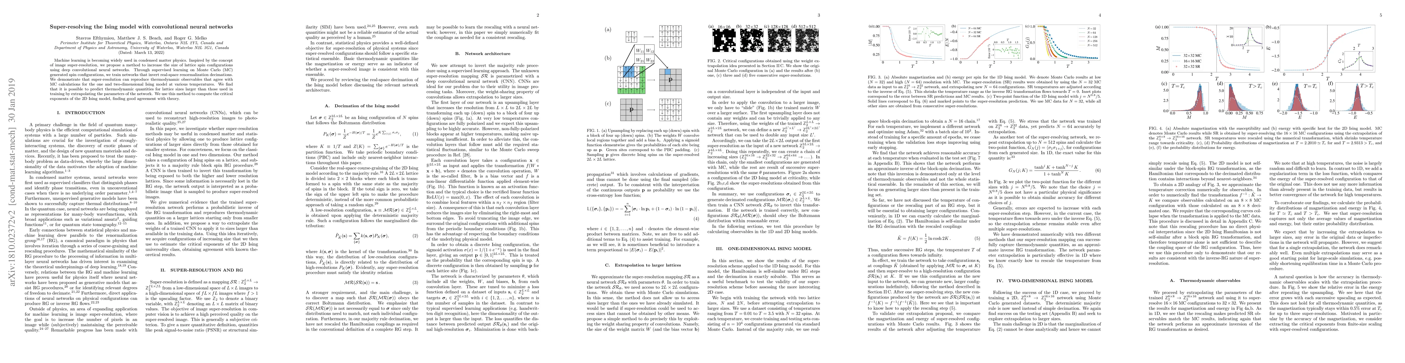 Machine learning is becoming widely used in condensed matter physics. Inspired by the concept of image super-resolution, we propose a method to increase the size of lattice spin configurations using deep convolutional neural networks. Through supervised learning on Monte Carlo (MC) generated spin configurations, we train networks that invert real-space renormalization decimations. We demonstrate that super-resolution can reproduce thermodynamic observables that agree with MC calculations for the one and two-dimensional Ising model at various temperatures. We find that it is possible to predict thermodynamic quantities for lattice sizes larger than those used in training by extrapolating the parameters of the network. We use this method to extrapolate the exponents of the 2D Ising critical point towards the thermodynamic limit, which results in good agreement with theory.