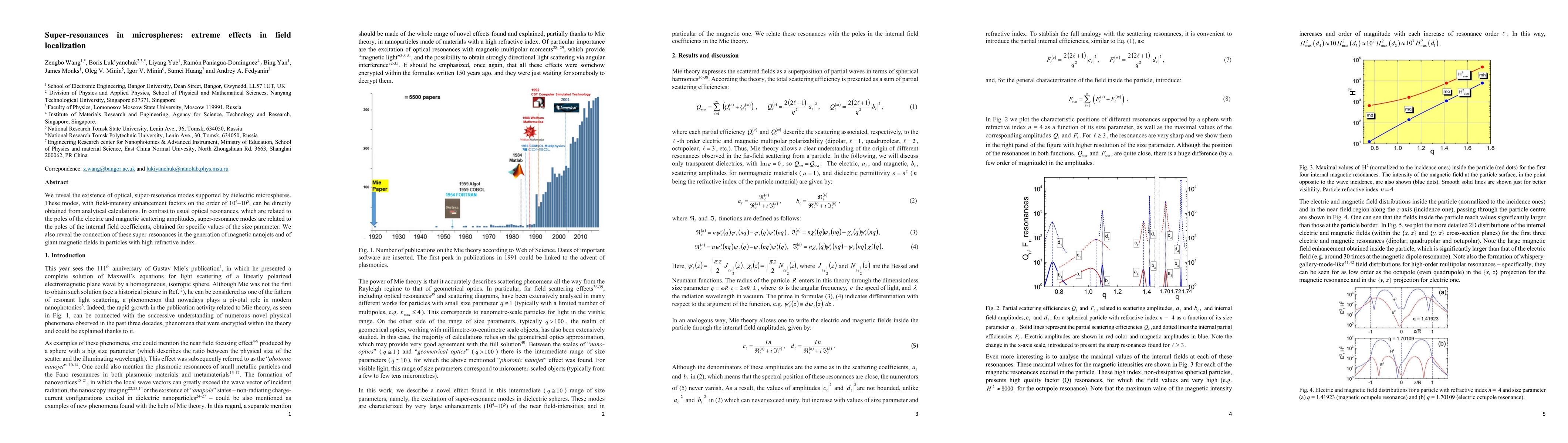 Researchers discovered optical super-resonance modes in microspheres, which enhance field intensity by up to 10^5 times, and found a connection between these effects and magnetic nanojets and giant magnetic fields.