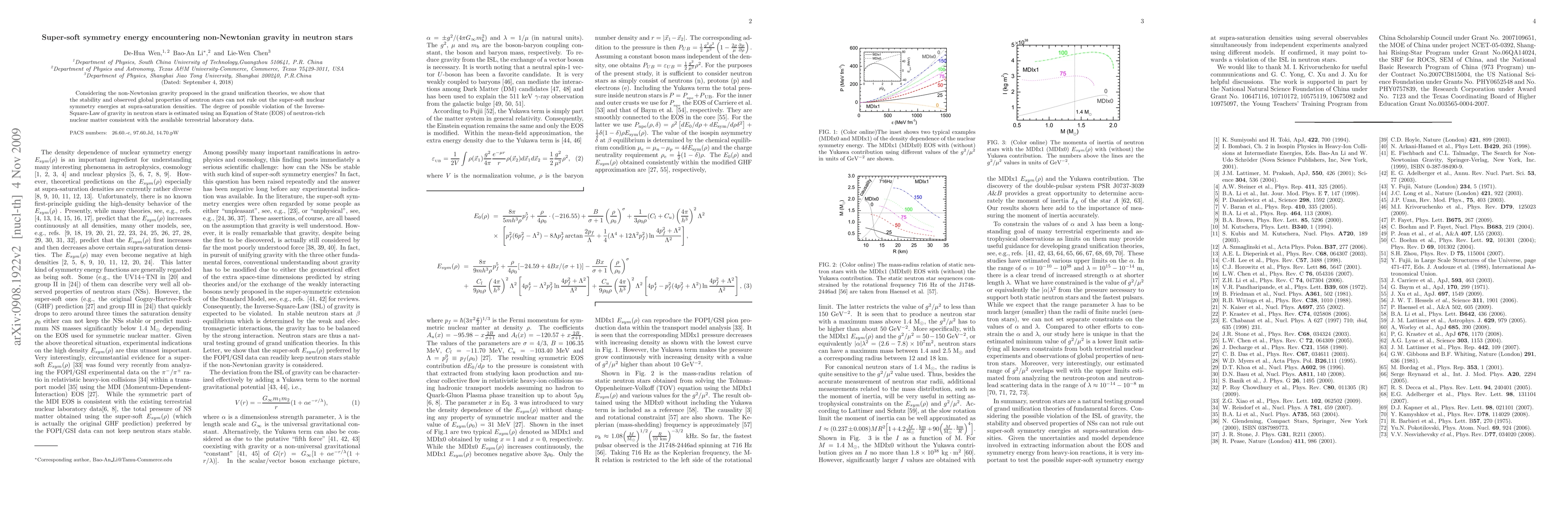 Considering the non-Newtonian gravity proposed in the grand unification theories, we show that the stability and observed global properties of neutron stars can not rule out the super-soft nuclear symmetry energies at supra-saturation densities. The degree of possible violation of the Inverse-Square-Law of gravity in neutron stars is estimated using an Equation of State (EOS) of neutron-rich nuclear matter consistent with the available terrestrial laboratory data.