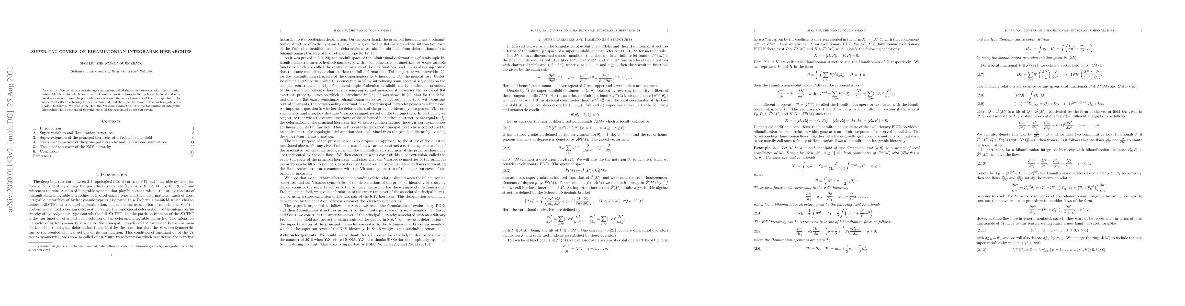 We consider a certain super extension, called the super tau-cover, of a bihamiltonian integrable hierarchy which contains the Hamiltonian structures including both the local and non-local ones as odd flows. In particular, we construct the super tau-cover of the principal hierarchy associated with an arbitrary Frobenius manifold, and the super tau-cover of the Korteweg-de Vries (KdV) hierarchy. We also show that the Virasoro symmetries of these bihamiltonan integrable hierarchies can be extended to symmetries of the associated super tau-covers.