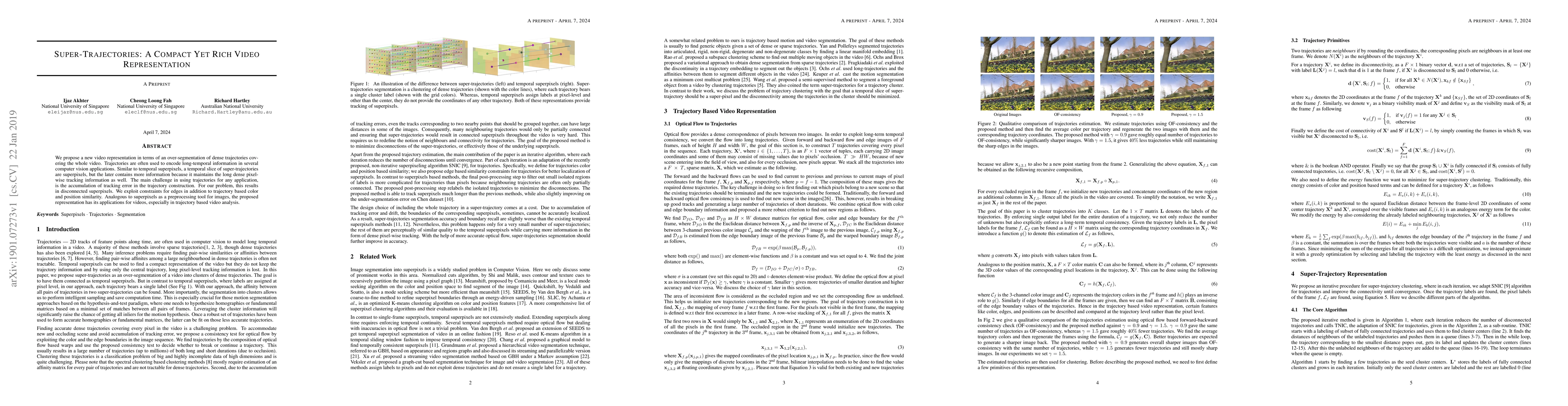 This paper introduces "super-trajectories," a new video representation that over-segments dense trajectories to encode long-temporal information. To address tracking error accumulation, the method incorporates edge constraints alongside trajectory-based similarity, aiming to create a rich, compact video representation for trajectory-based analysis.