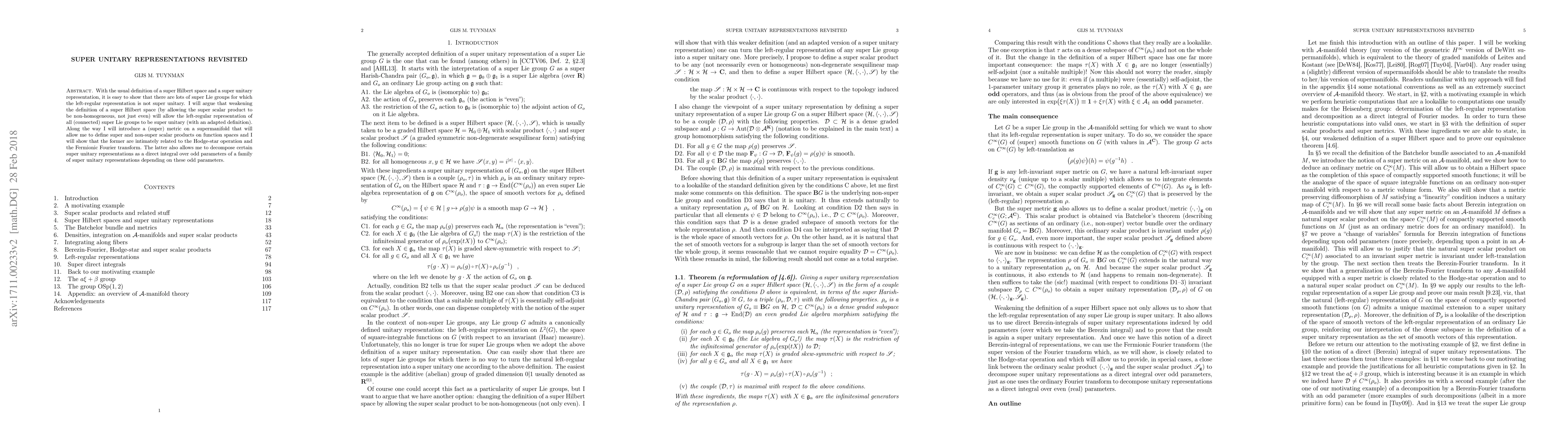 This paper revisits the concept of super unitary representations by relaxing the definition of a super Hilbert space to allow non-homogeneous super scalar products. It demonstrates that this adjustment enables the left-regular representation of all connected super Lie groups to be super unitary, introducing a (super) metric and exploring its relation to the Hodge-star operation and Fermionic Fourier transform.