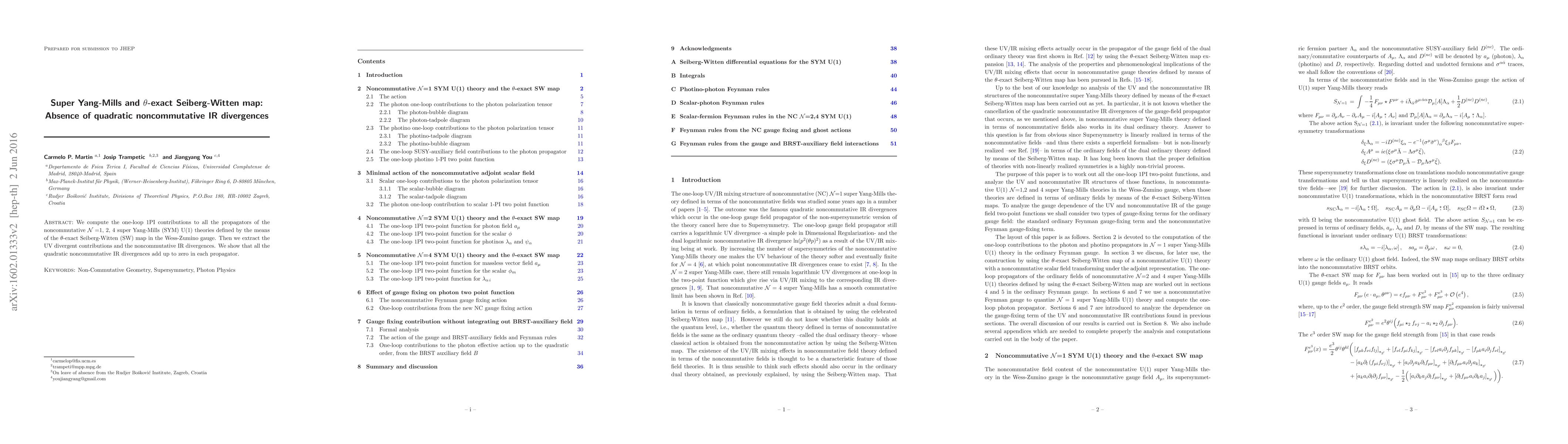 Summary: The research computes one-loop contributions for various noncommutative super Yang-Mills theories using the theta-exact Seiberg-Witten map, revealing that quadratic noncommutative infrared divergences cancel out across all propagators.