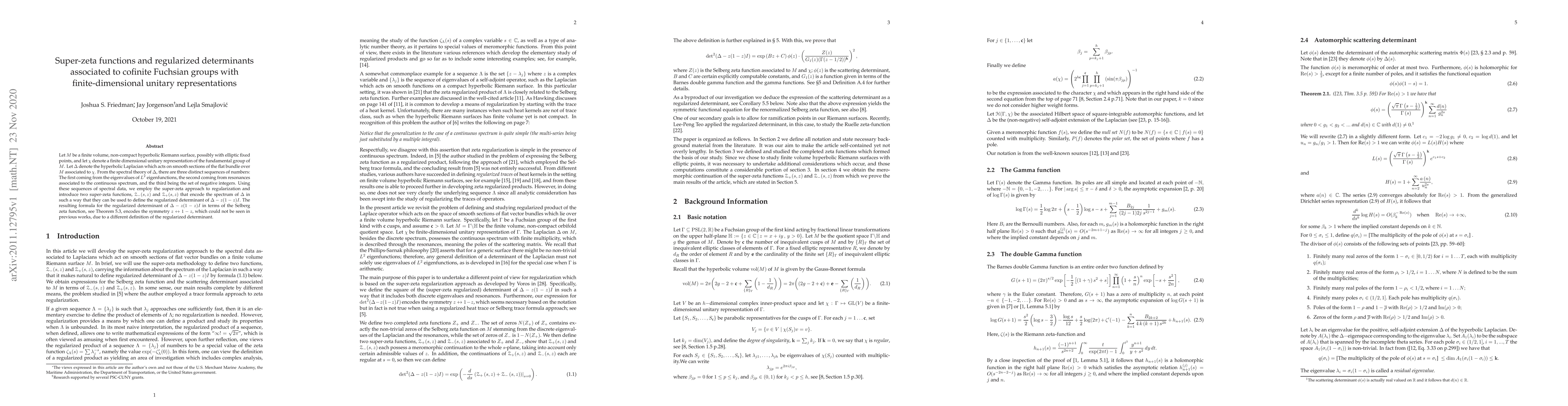 This paper introduces super-zeta functions to regularize determinants associated with the hyperbolic Laplacian on a non-compact hyperbolic Riemann surface, using spectral data. It reveals a symmetry in the regularized determinant not previously observed due to a new regularization method.