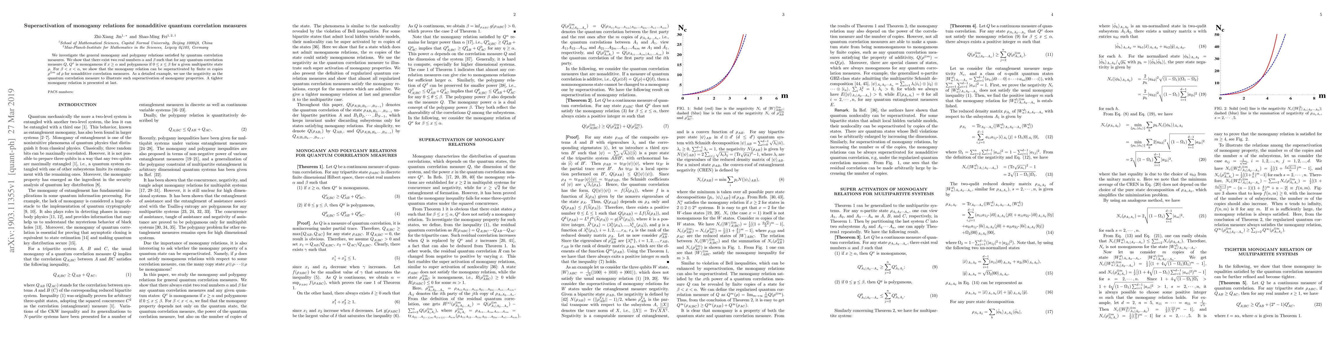 This paper explores the monogamy and polygamy relations of quantum correlation measures, demonstrating that for nonadditive measures, the monogamy relation can be superactivated by multiple copies of a given state, particularly for values of $x$ between $\beta$ and $\alpha$. An example using negativity illustrates this superactivation phenomenon.