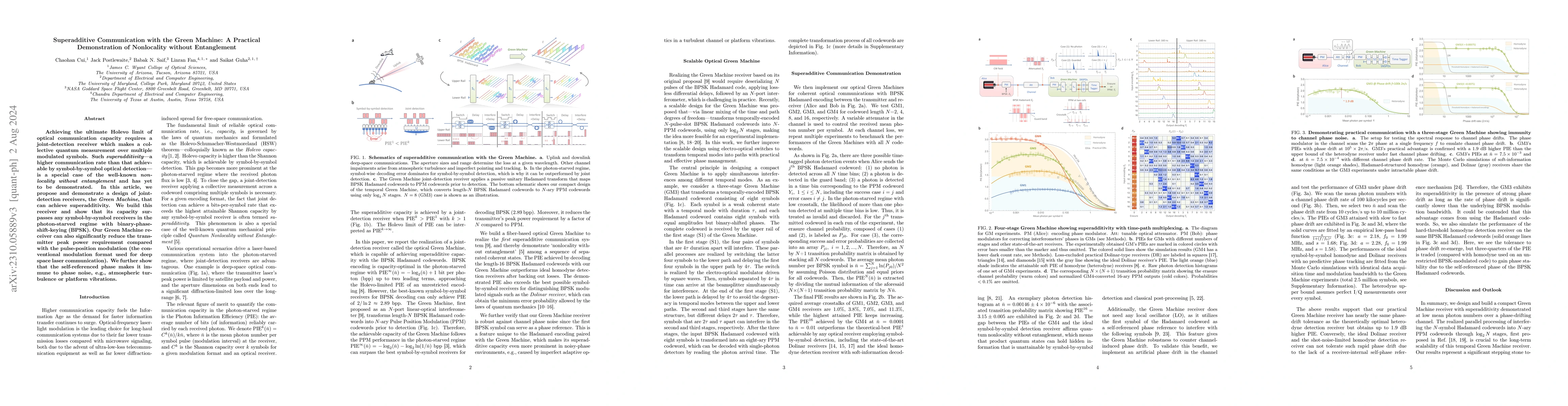 This paper proposes and demonstrates a practical joint-detection receiver, the Green Machine, which achieves superadditive communication capacity using a binary-phase-shift-keying modulated Hadamard code, surpassing conventional symbol-by-symbol receivers, while also being more immune to phase noise and requiring less transmitter peak power.