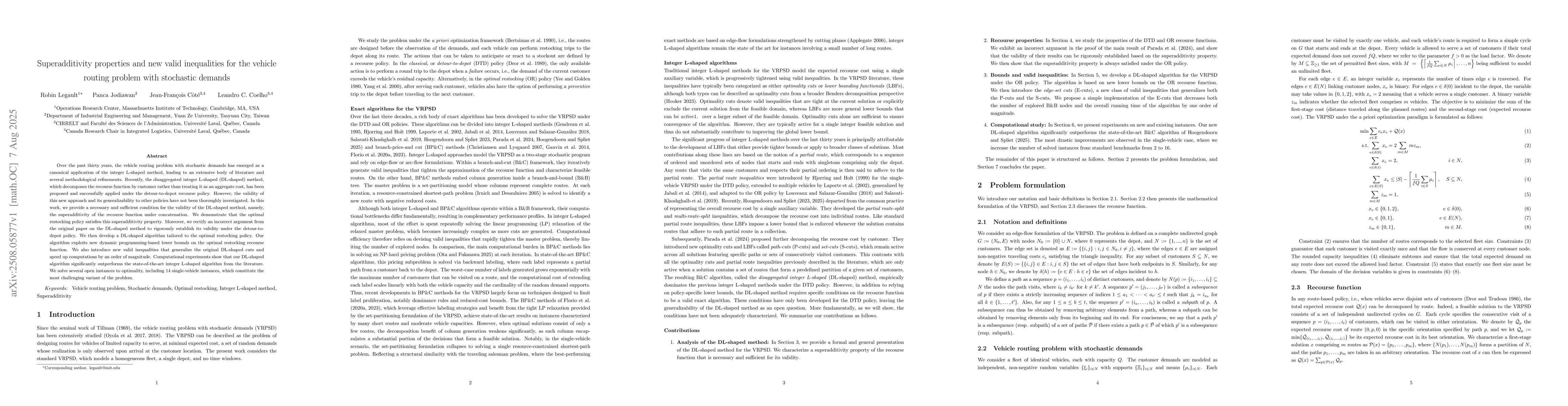 Over the past thirty years, the vehicle routing problem with stochastic demands has emerged as a canonical application of the integer L-shaped method, leading to an extensive body of literature and several methodological refinements. Recently, the disaggregated integer L-shaped (DL-shaped) method, which decomposes the recourse function by customer rather than treating it as an aggregate cost, has been proposed and successfully applied under the detour-to-depot recourse policy. However, the validity of this new approach and its generalizability to other policies have not been thoroughly investigated. In this work, we provide a necessary and sufficient condition for the validity of the DL-shaped method, namely, the superadditivity of the recourse function under concatenation. We demonstrate that the optimal restocking policy satisfies this superadditivity property. Moreover, we rectify an incorrect argument from the original paper on the DL-shaped method to rigorously establish its validity under the detour-to-depot policy. We then develop a DL-shaped algorithm tailored to the optimal restocking policy. Our algorithm exploits new dynamic programming-based lower bounds on the optimal restocking recourse function. We also introduce new valid inequalities that generalize the original DL-shaped cuts and speed up computations by an order of magnitude. Computational experiments show that our DL-shaped algorithm significantly outperforms the state-of-the-art integer L-shaped algorithm from the literature. We solve several open instances to optimality, including 14 single-vehicle instances, which constitute the most challenging variant of the problem.