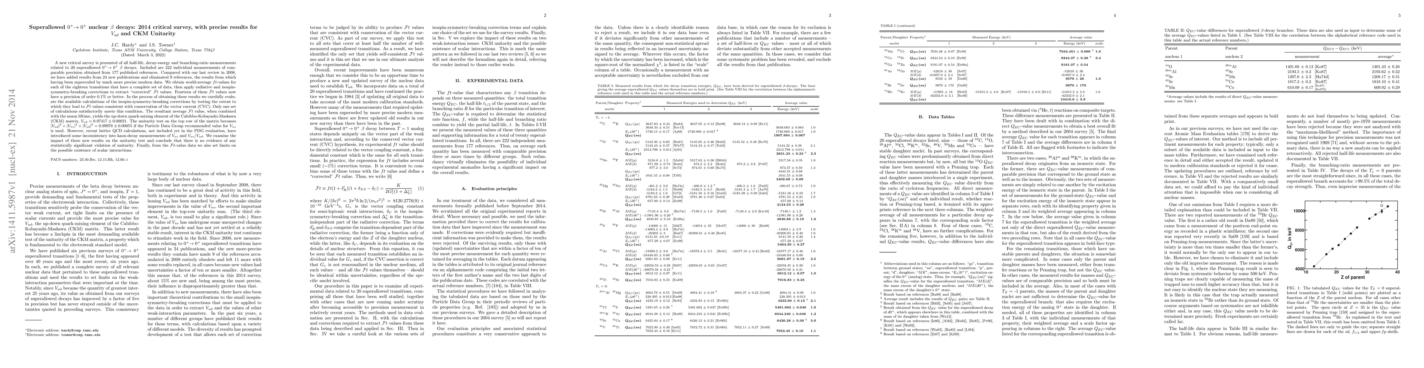 A new critical survey is presented of all half-life, decay-energy and branching-ratio measurements related to 20 superallowed 0+ --> 0+ beta decays. Included are 222 individual measurements of comparable precision obtained from 177 published references. Compared with our last review in 2008, we have added results from 24 new publications and eliminated 9 references, the results from which having been superseded by much more precise modern data. We obtain world-average ft-values for each of the eighteen transitions that have a complete set of data, then apply radiative and isospin-symmetry-breaking corrections to extract corrected Ft values. Fourteen of these Ft values now have a precision of order 0.1% or better. In the process of obtaining these results we carefully evaluate the available calculations of the isospin-symmetry-breaking corrections by testing the extent to which they lead to Ft values consistent with conservation of the vector current (CVC). Only one set of calculations satisfactorily meets this condition. The resultant average Ft value, when combined with the muon liftime, yields the up-down quark-mixing element of the Cabibbo-Kobayashi-Maskawa (CKM) matrix, Vud = 0.97417 +/- 0.00021. The unitarity test on the top row of the matrix becomes |Vud|^2 + |Vus|^2 + |Vub|^2 = 0.99978 +/- 0.00055 if the Particle Data Group recommended value for Vus is used. However, recent lattice QCD calculations, not included yet in the PDG evaluation, have introduced some inconsistency into kaon-decay measurements of Vus and Vus/Vud. We examine the impact of these new results on the unitarity test and conclude that there is no evidence of any statistically significant violation of unitarity. Finally, from the Ft-value data we also set limits on the possible existence of scalar interactions.