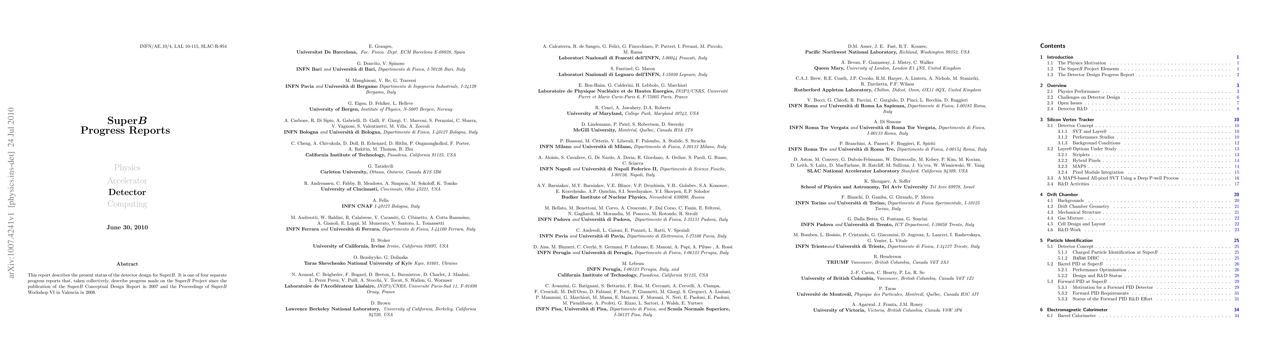 This report details the current status of the detector design for the SuperB project, focusing on the technological advancements and design specifications. It complements three other reports covering physics, accelerator, and computing aspects, collectively summarizing progress since 2007.