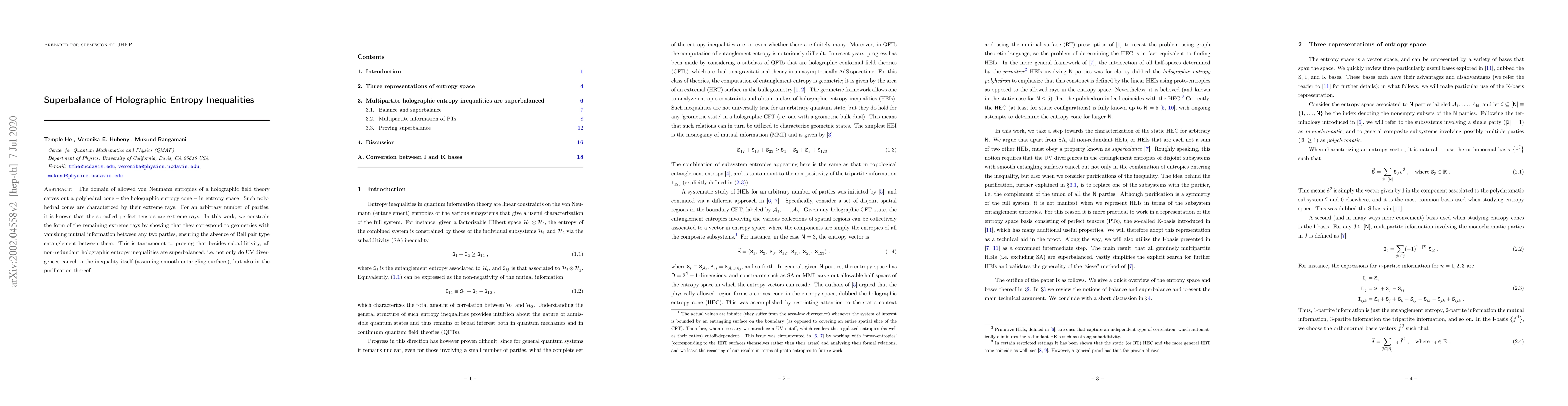 This paper demonstrates that non-redundant holographic entropy inequalities are superbalanced, meaning that UV divergences not only cancel in the inequalities but also in their purifications, by showing that remaining extreme rays correspond to geometries with zero mutual information between any two parties.