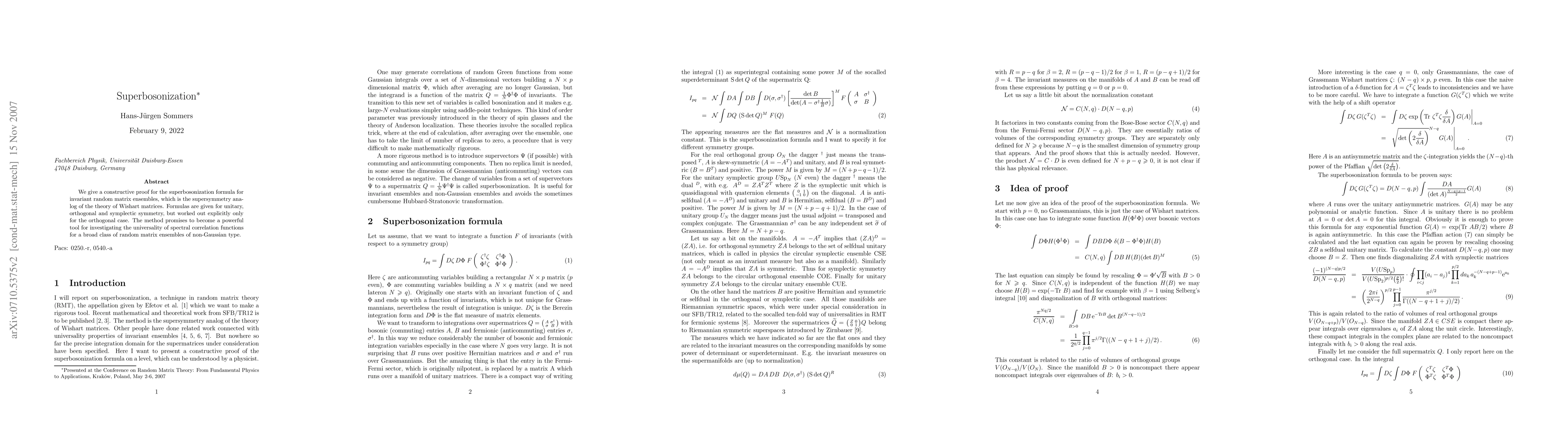This paper provides a constructive proof for the superbosonization formula for invariant random matrix ensembles, specifically focusing on the orthogonal case. It aims to investigate the universality of spectral correlation functions for non-Gaussian random matrix ensembles.