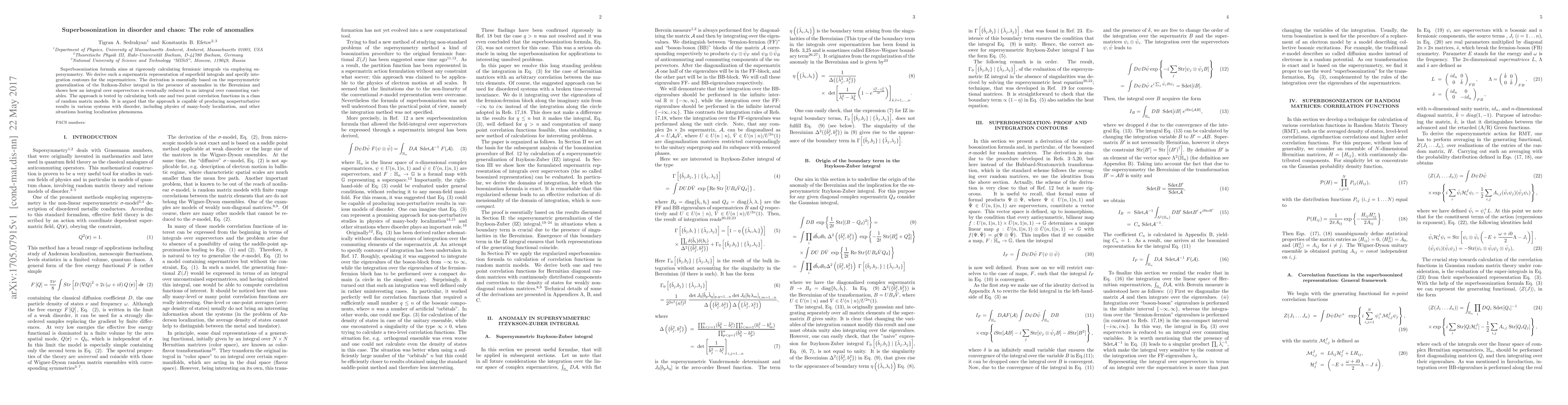Superbosonization formula aims at rigorously calculating fermionic integrals via employing supersymmetry. We derive such a supermatrix representation of superfield integrals and specify integration contours for the supermatrices. The derivation is essentially based on the supersymmetric generalization of the Itzikson-Zuber integral in the presence of anomalies in the Berezinian and shows how an integral over supervectors is eventually reduced to an integral over commuting variables. The approach is tested by calculating both one and two point correlation functions in a class of random matrix models. It is argued that the approach is capable of producing nonperturbative results in various systems with disorder, including physics of many-body localization, and other situations hosting localization phenomena.