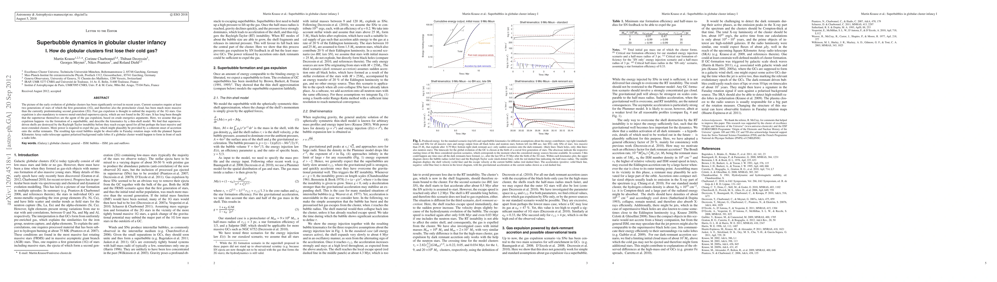 The picture of the early evolution of globular clusters has been significantly revised in recent years. Current scenarios require at least two generations of stars of which the first generation (1G), and therefore also the protocluster cloud, has been much more massive than the currently predominating second generation (2G). Fast gas expulsion is thought to unbind the majority of the 1G stars. Gas expulsion is also mandatory to remove metal-enriched supernova ejecta, which are not found in the 2G stars. It has long been thought that the supernovae themselves are the agent of the gas expulsion, based on crude energetics arguments. Here, we assume that gas expulsion happens via the formation of a superbubble, and describe the kinematics by a thin-shell model. We find that supernova- driven shells are destroyed by the Rayleigh-Taylor instability before they reach escape speed for all but perhaps the least massive and most extended clusters. More power is required to expel the gas, which might plausibly be provided by a coherent onset of accretion onto the stellar remnants. The resulting kpc-sized bubbles might be observable in Faraday rotation maps with the planned Square Kilometre Array radio telescope against polarised background radio lobes if a globular cluster would happen to form in front of such a radio lobe.