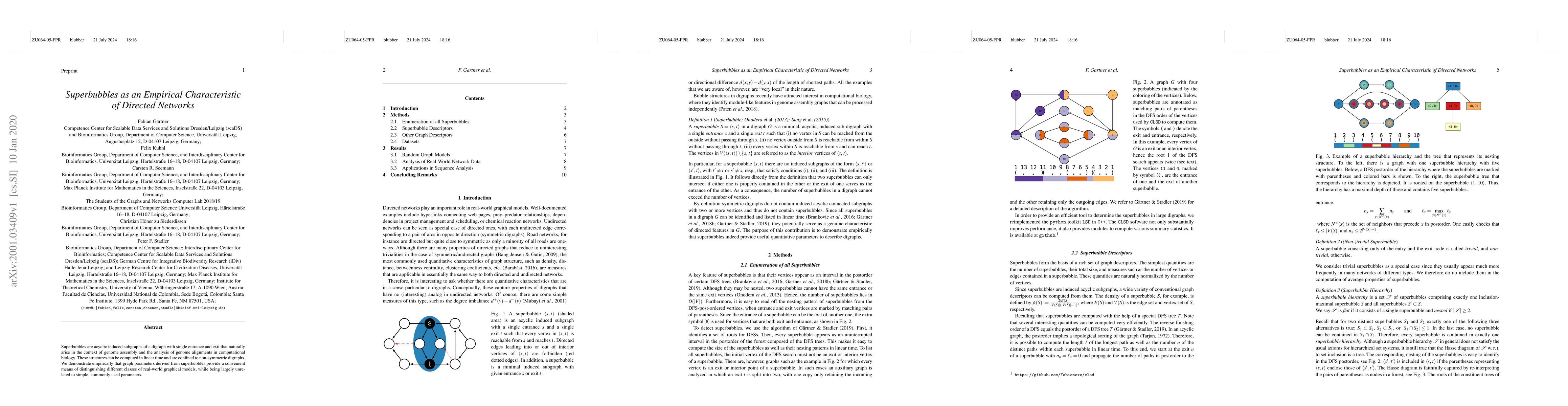 Superbubbles are acyclic induced subgraphs of a digraph with single entrance and exit that naturally arise in the context of genome assembly and the analysis of genome alignments in computational biology. These structures can be computed in linear time and are confined to non-symmetric digraphs. We demonstrate empirically that graph parameters derived from superbubbles provide a convenient means of distinguishing different classes of real-world graphical models, while being largely unrelated to simple, commonly used parameters.