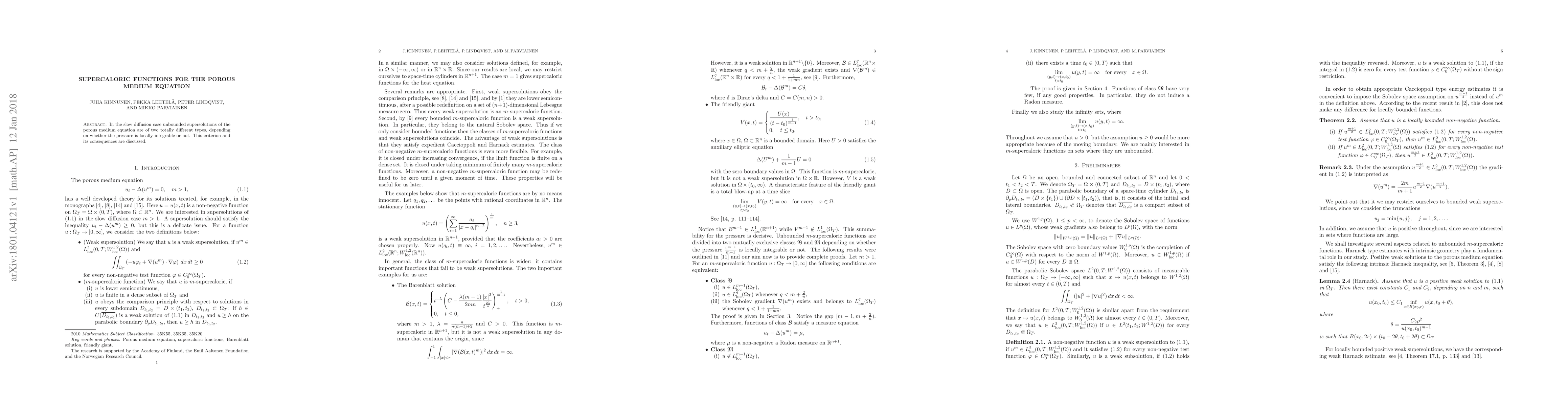 In the slow diffusion case unbounded supersolutions of the porous medium equation are of two totally different types, depending on whether the pressure is locally integrable or not. This criterion and its consequences are discussed.