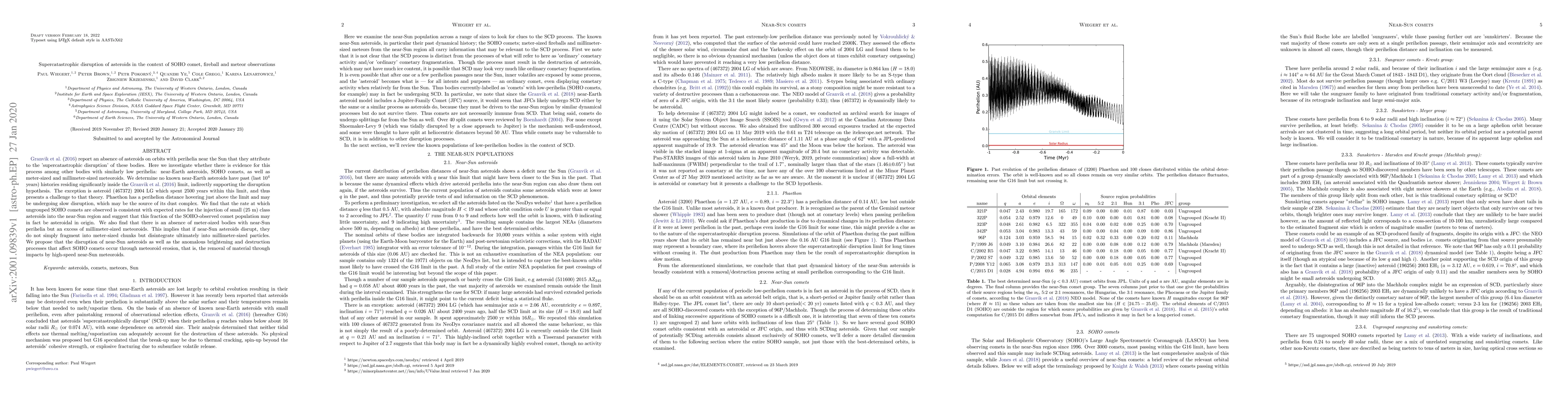 Granvik et al. (2016) report an absence of asteroids on orbits with perihelia near the Sun that they attribute to the 'supercatastrophic disruption' of these bodies. Here we investigate whether there is evidence for this process among other bodies with similarly low perihelia: near-Earth asteroids, SOHO comets, as well as meter-sized and millimeter-sized meteoroids. We determine no known near-Earth asteroids have past (last 10^4 years) histories residing significantly inside the Granvik et al. (2016) limit, indirectly supporting the disruption hypothesis. The exception is asteroid (467372) 2004 LG which spent 2500 years within this limit, and thus presents a challenge to that theory. Phaethon has a perihelion distance hovering just above the limit and may be undergoing slow disruption, which may be the source of its dust complex. We find that the rate at which ungrouped SOHO comets are observed is consistent with expected rates for the injection of small (25 m) class asteroids into the near-Sun region and suggest that this fraction of the SOHO-observed comet population may in fact be asteroidal in origin. We also find that there is an absence of meter-sized bodies with near-Sun perihelia but an excess of millimeter-sized meteoroids. This implies that if near-Sun asteroids disrupt, they do not simply fragment into meter-sized chunks but disintegrate ultimately into millimeter-sized particles. We propose that the disruption of near-Sun asteroids as well as the anomalous brightening and destruction processes that affect SOHO comets occur through meteoroid erosion, that is, the removal of material through impacts by high-speed near-Sun meteoroids.