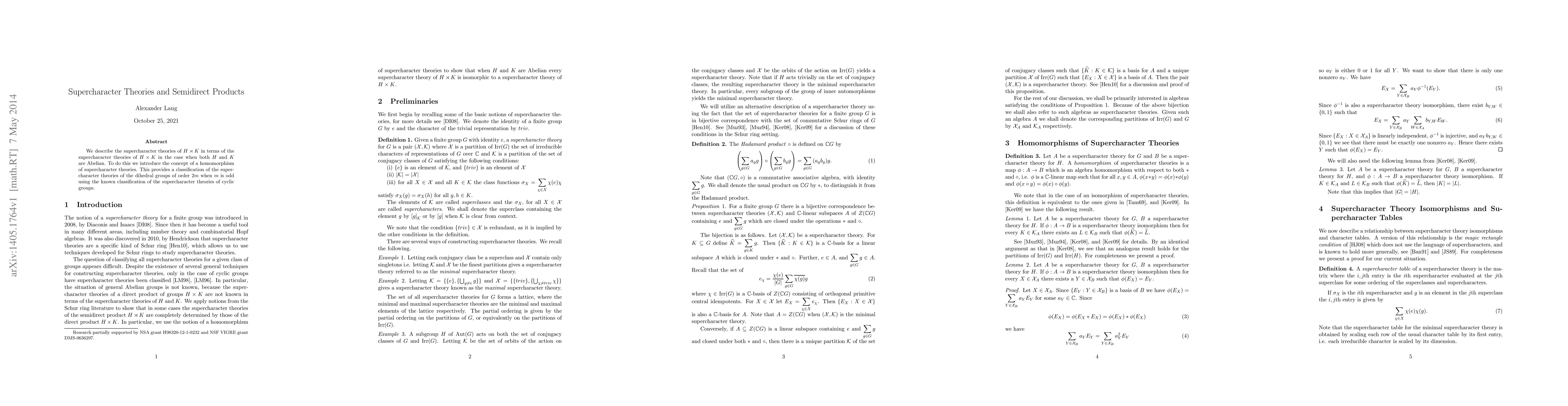 This paper explores supercharacter theories of semidirect products $H\rtimes K$ when $H$ and $K$ are Abelian, introducing a homomorphism concept to relate them to direct products. It uses this to classify supercharacter theories of dihedral groups of odd order $2m$ via cyclic group classifications.