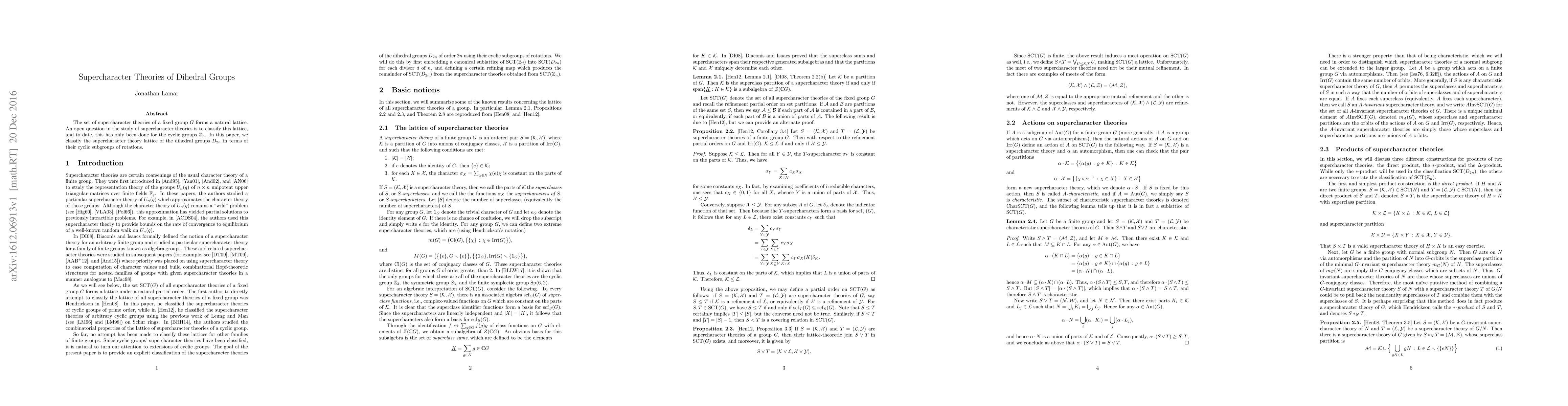 This paper classifies the supercharacter theory lattice of dihedral groups $D_{2n}$, focusing on their cyclic subgroups of rotations, extending the known classification for cyclic groups $\mathbb{Z}_n$. This advancement provides deeper insight into the structure of supercharacter theories in non-cyclic groups.