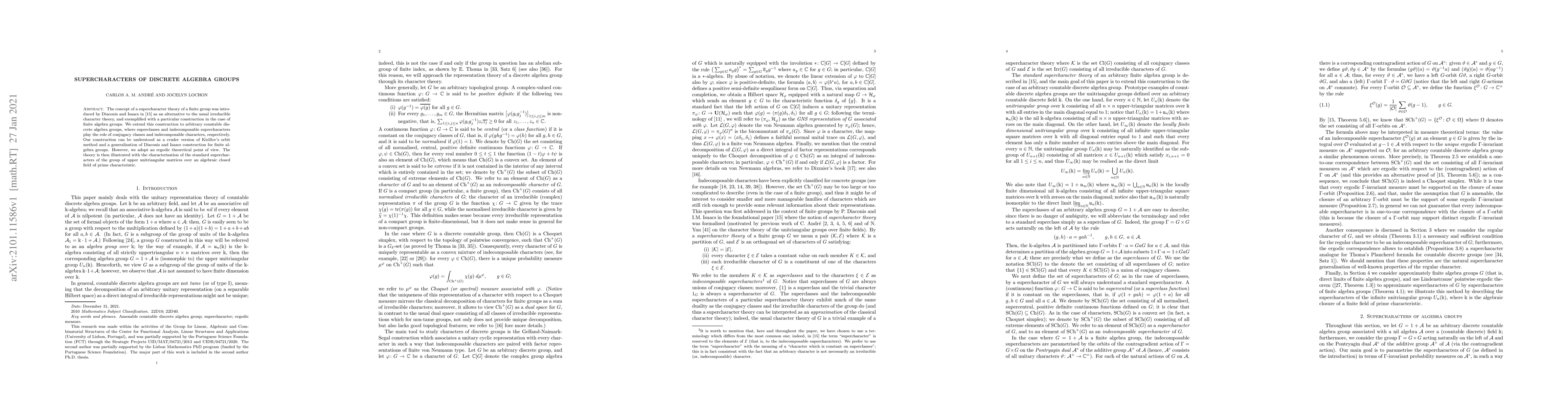 The concept of a supercharacter theory of a finite group was introduced by Diaconis and Isaacs as an alternative to the usual irreducible character theory, and exemplified with a particular construction in the case of finite algebra groups. We extend this construction to arbitrary countable discrete algebra groups, where superclasses and indecomposable supercharacters play the role of conjugacy classes and indecomposable characters, respectively. Our construction can be understood as a cruder version of Kirillov's orbit method and a generalisation of Diaconis and Isaacs construction for finite algebra groups. However, we adopt an ergodic theoretical point of view. The theory is then illustrated with the characterisation of the standard supercharacters of the group of upper unitriangular matrices over an algebraic closed field of prime characteristic.