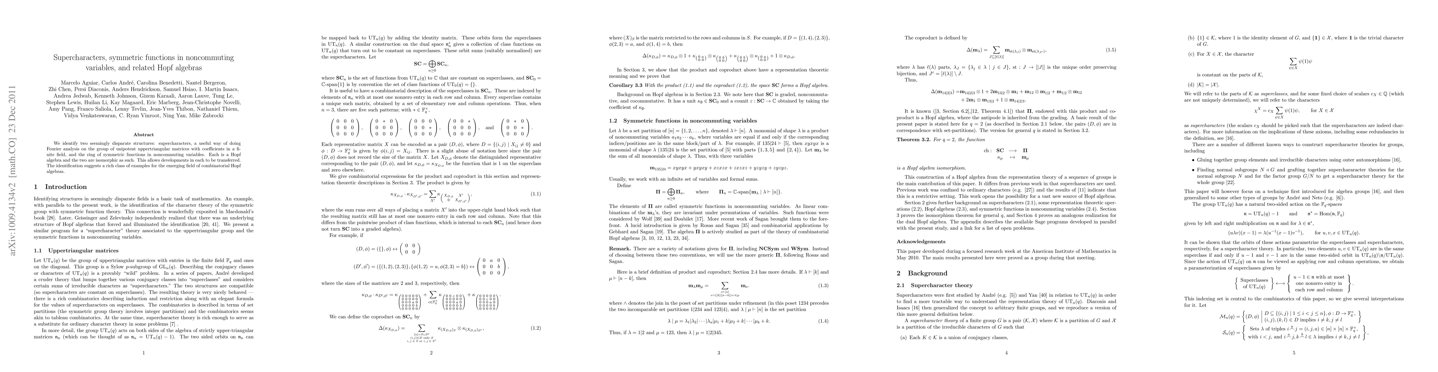 Summary: The paper establishes an isomorphism between supercharacters of unipotent upper triangular matrices and symmetric functions in noncommuting variables, both of which are Hopf algebras, allowing insights and developments from one field to be transferred to the other and suggesting numerous examples for combinatorial Hopf algebras.