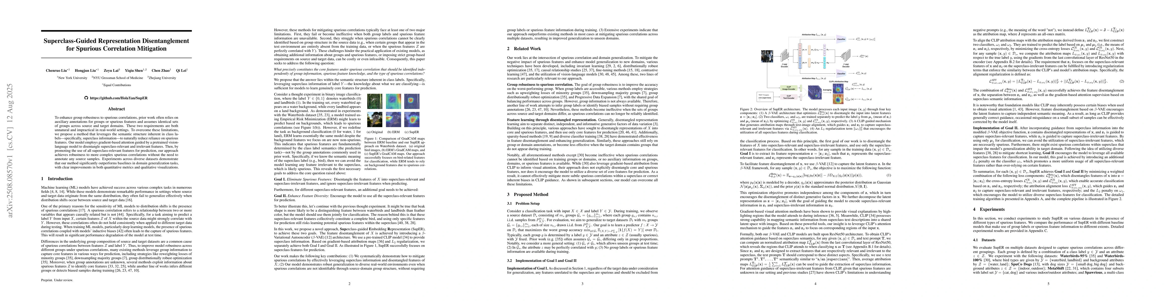 To enhance group robustness to spurious correlations, prior work often relies on auxiliary annotations for groups or spurious features and assumes identical sets of groups across source and target domains. These two requirements are both unnatural and impractical in real-world settings. To overcome these limitations, we propose a method that leverages the semantic structure inherent in class labels--specifically, superclass information--to naturally reduce reliance on spurious features. Our model employs gradient-based attention guided by a pre-trained vision-language model to disentangle superclass-relevant and irrelevant features. Then, by promoting the use of all superclass-relevant features for prediction, our approach achieves robustness to more complex spurious correlations without the need to annotate any source samples. Experiments across diverse datasets demonstrate that our method significantly outperforms baselines in domain generalization tasks, with clear improvements in both quantitative metrics and qualitative visualizations.