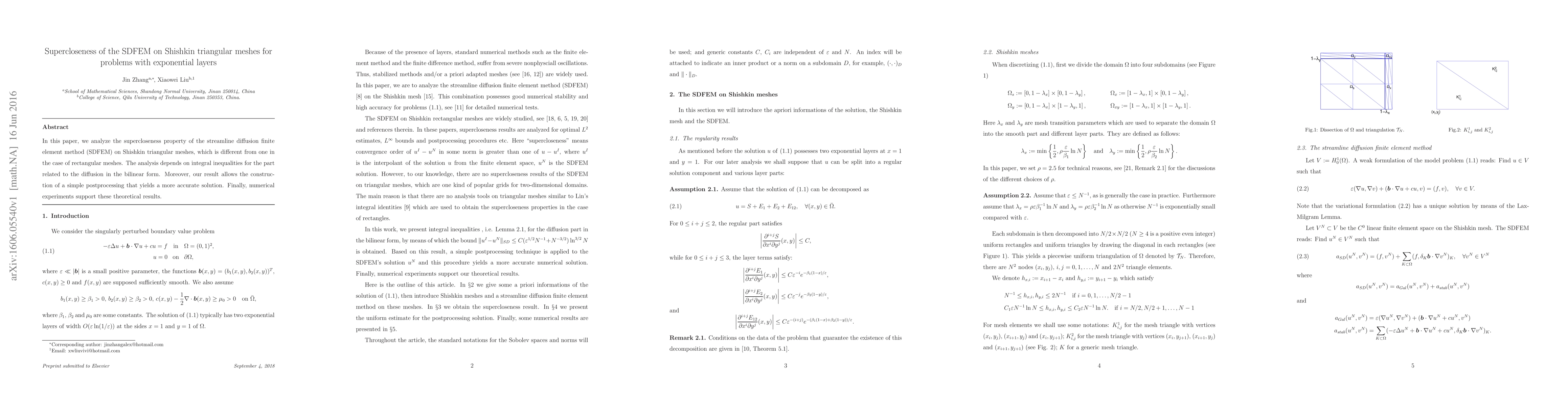 This paper investigates the supercloseness of the SDFEM on Shishkin triangular meshes for problems involving exponential layers, demonstrating different behavior compared to rectangular meshes. It utilizes integral inequalities and proposes a postprocessing technique for enhanced accuracy, supported by numerical experiments.