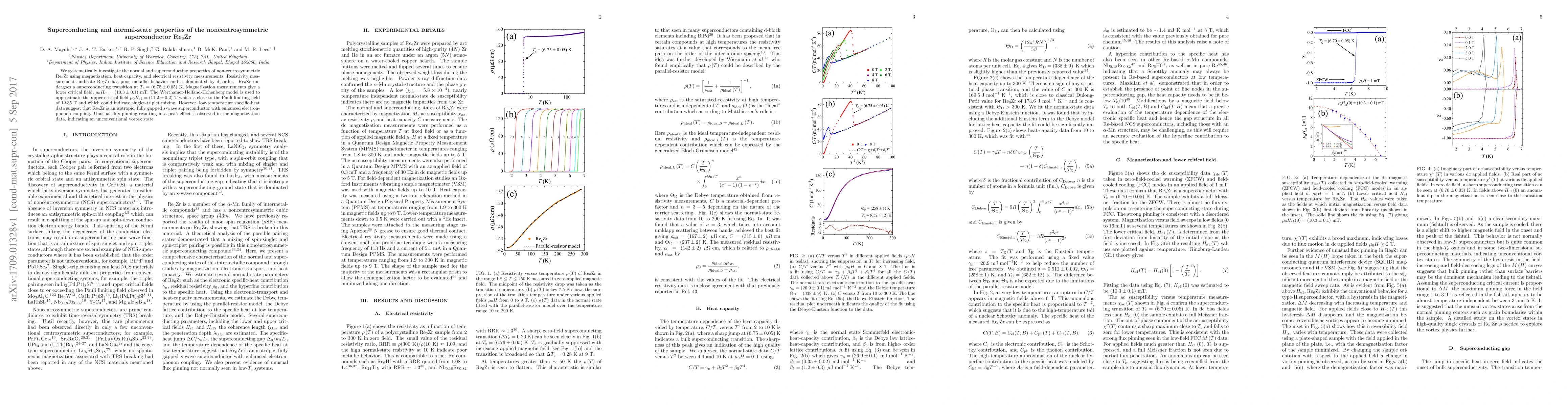 We systematically investigate the normal and superconducting properties of non-centrosymmetric Re$_{6}$Zr using magnetization, heat capacity, and electrical resistivity measurements. Resistivity measurements indicate Re$_{6}$Zr has poor metallic behavior and is dominated by disorder. Re$_6$Zr undergoes a superconducting transition at $T_{\mathrm{c}} = \left(6.75\pm0.05\right)$ K. Magnetization measurements give a lower critical field, $\mu_{0}H_{\mathrm{c1}} = \left(10.3 \pm 0.1\right)$ mT. The Werthamer-Helfand-Hohenberg model is used to approximate the upper critical field $\mu_{0}H_{\mathrm{c2}} = \left(11.2 \pm 0.2\right)$ T which is close to the Pauli limiting field of 12.35 T and which could indicate singlet-triplet mixing. However, low-temperature specific-heat data suggest that Re$_{6}$Zr is an isotropic, fully gapped s-wave superconductor with enhanced electron-phonon coupling. Unusual flux pinning resulting in a peak effect is observed in the magnetization data, indicating an unconventional vortex state.