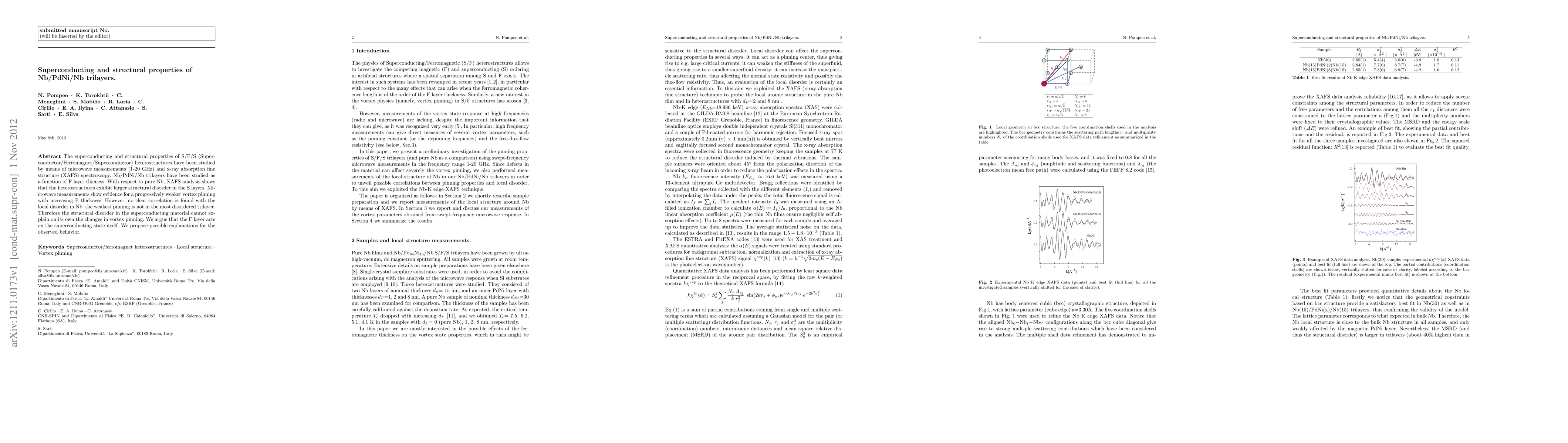 The research presents a detailed analysis of structural disorder and vortex pinning in Nb/PdNi/Nb trilayers using advanced spectroscopy and microwave techniques.