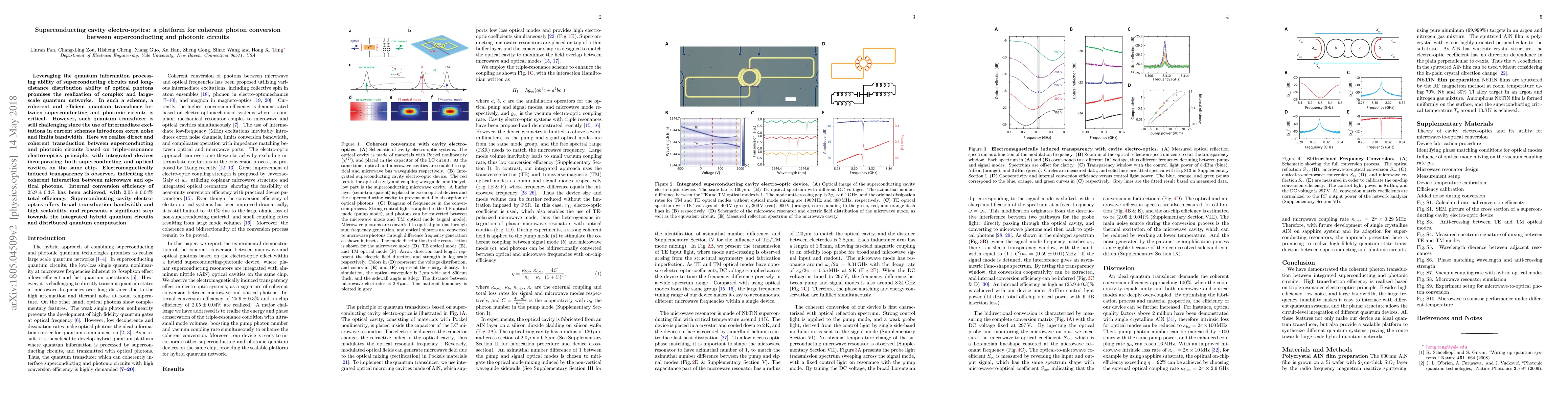This research paper presents a novel superconducting cavity electro-optics platform enabling direct and coherent photon conversion between superconducting and photonic circuits, achieving 25.9±0.3% internal and 2.05±0.04% total conversion efficiency. The integrated devices demonstrate electromagnetically induced transparency, indicating significant potential for large-scale quantum networks.